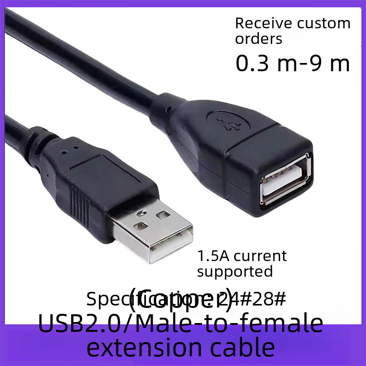 All copper USB2.0 extension cord male to female with magnetic ring double shield A/F wireless network card extended data cable