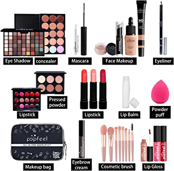 The palette includes a range of colors, including neutral, vibrant, shimmer, and speckled, making it perfect for creating both dark and mysterious or bright and bold looks. It is an all-in-one makeup set that includes all the essentials a woman needs in an elegant box, making it a great gift for any occasion. The set includes eyeshadow, pressed powder, lipstick, lipgloss, concealer cream, makeup brush, eyebrow cream, eyeliner, lip balm, mascara, foundation, powder puff, and a travel bag.