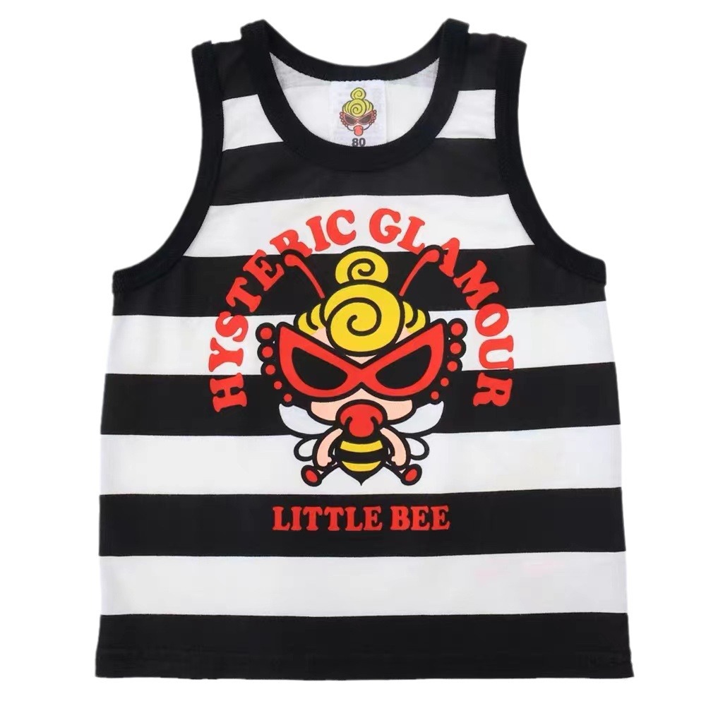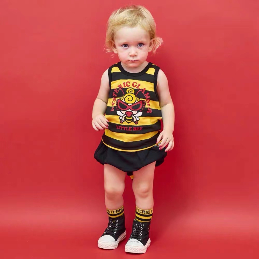 [All in stock] 24 Summer Trendy Brand Children’s Wear Black Super Striped Bee Children’s Cotton Vest Tail Pants