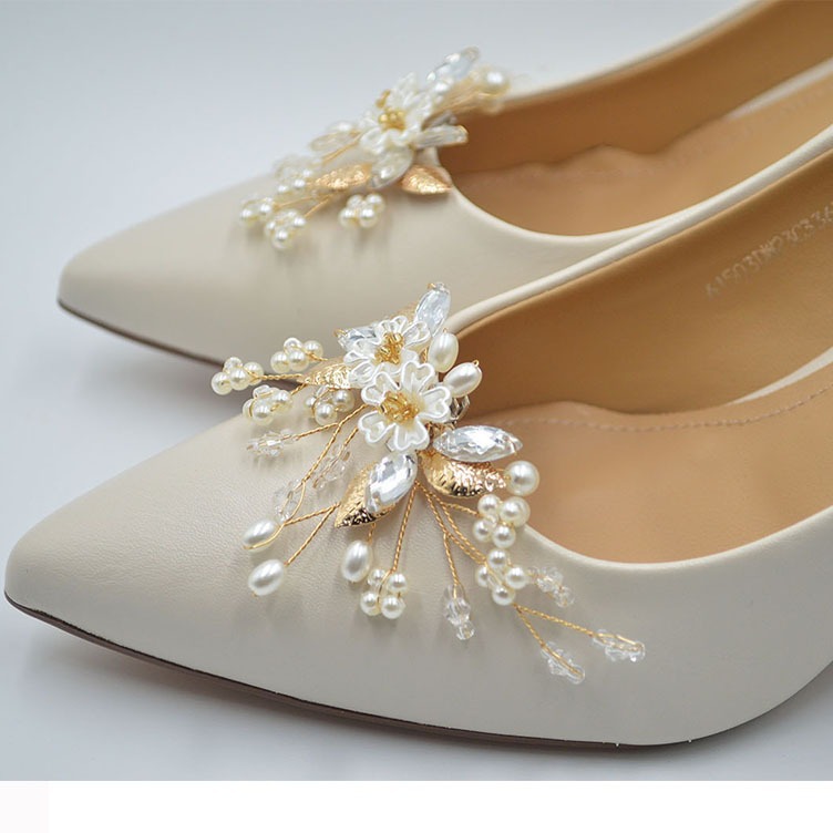 All-Match Bridal Wedding Accessories Detachable Pearl Flower Shoe Flower Alloy Shoe Buckle Shoe Decoration