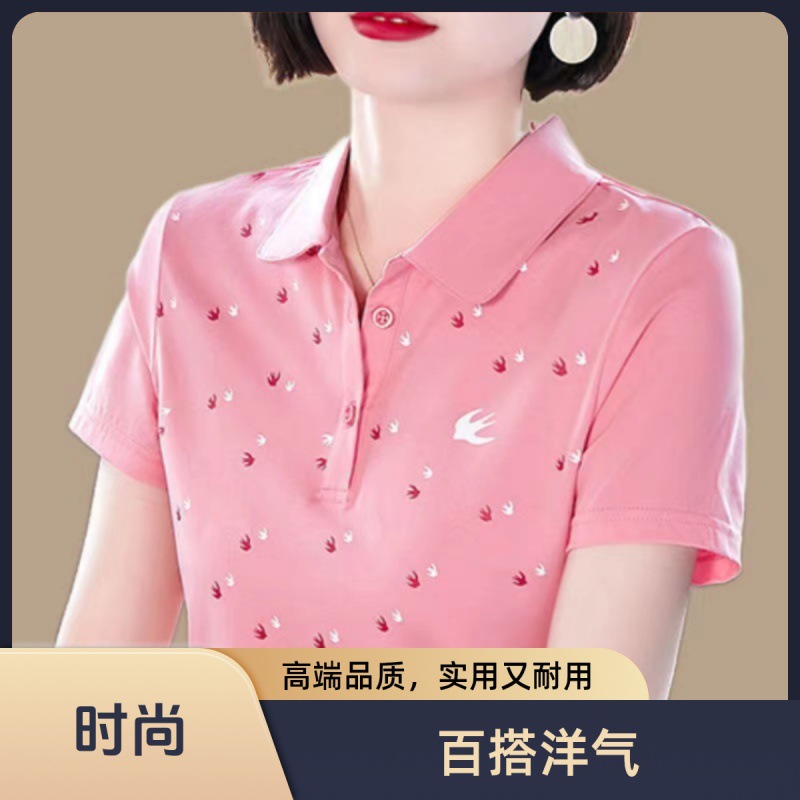 | nameOriginal | All-match foreign style mother lapel short sleeve T-shirt women's summer new polo middle-aged sports casual top plus size |