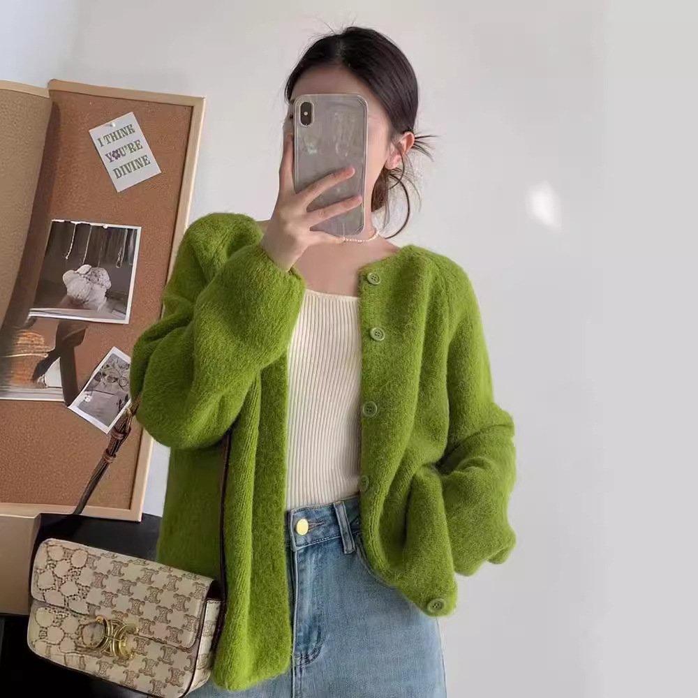 | nameOriginal | All-Match Gentle Soft Waxy Knitted Cardigan Women's 2024 Autumn and Winter New Green Loose Long-Sleeved Sweater Jacket |
