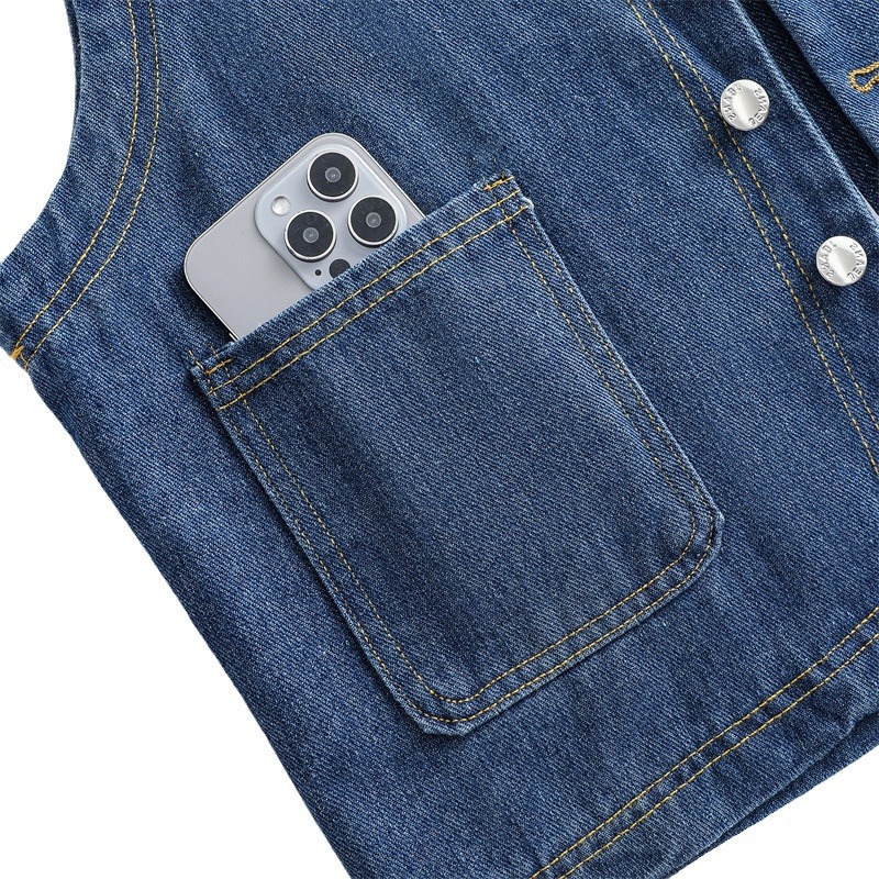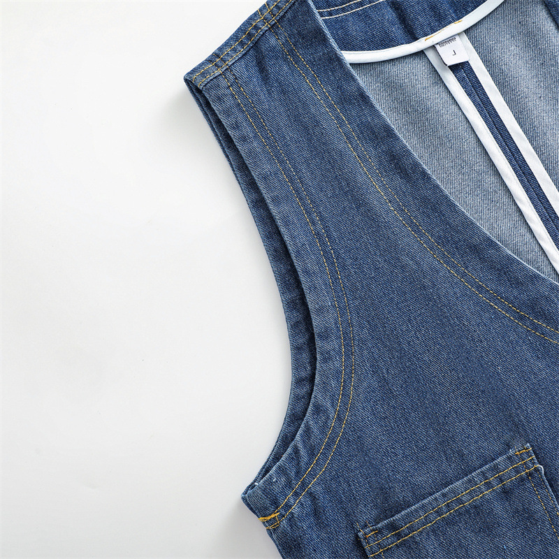 All-Match Hong Kong Style Denim Vest Women’s 2024 New Loose plus size Casual Pocket Vest Fashionable Short Small Outer Vest