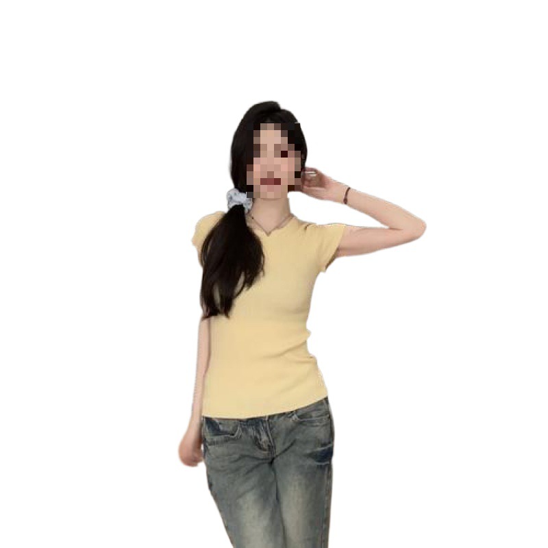 | nameOriginal | All-match Round Neck Solid Color Slim-fit Knitted Short-sleeved Shirt Women's Spring and Summer 2024 New Top |