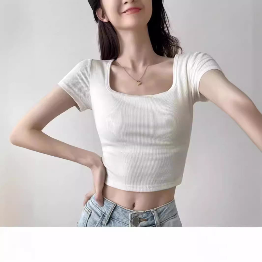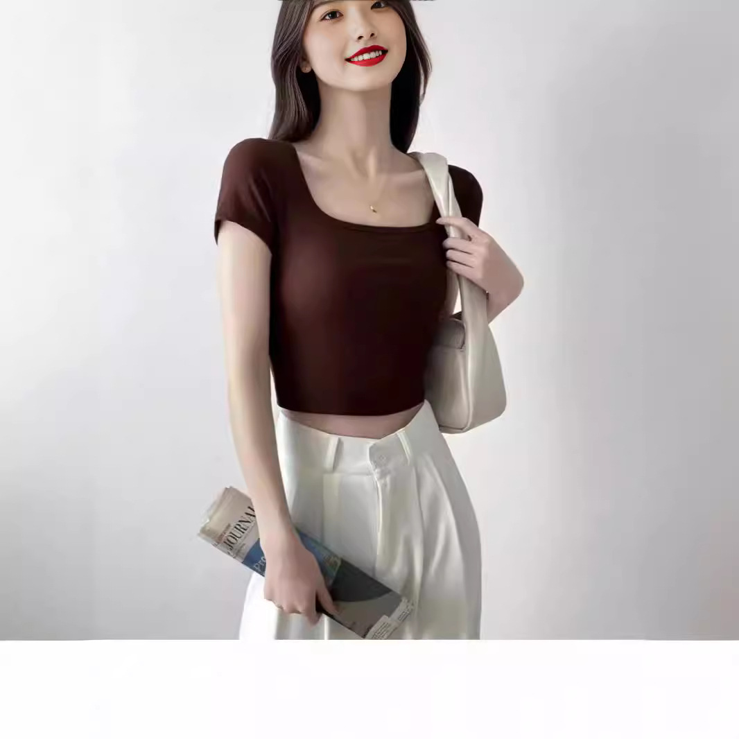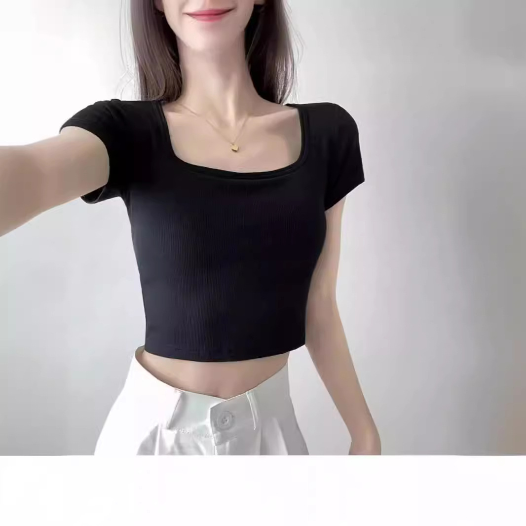 | nameOriginal | All-Match Square Collar Solid Color Short-Sleeved T-Shirt with Chest Pad Women's Hot Girl Summer Short Slim-Fit Slimming Base Outer Wear Top |