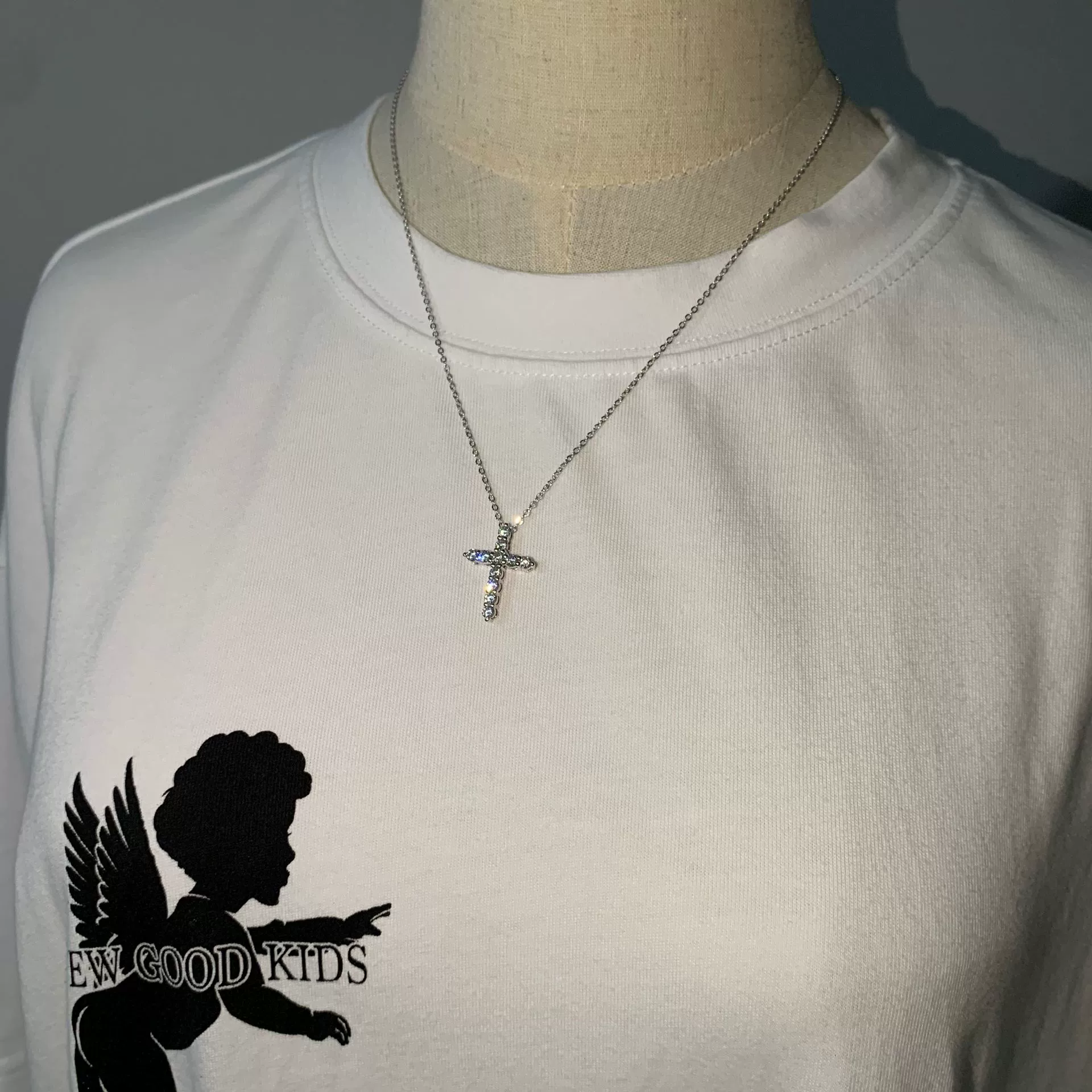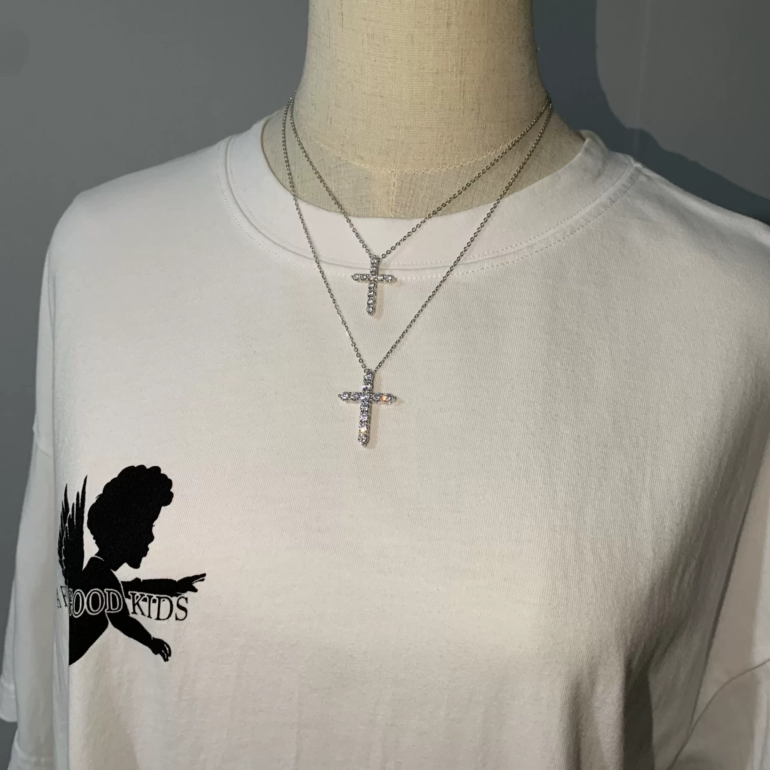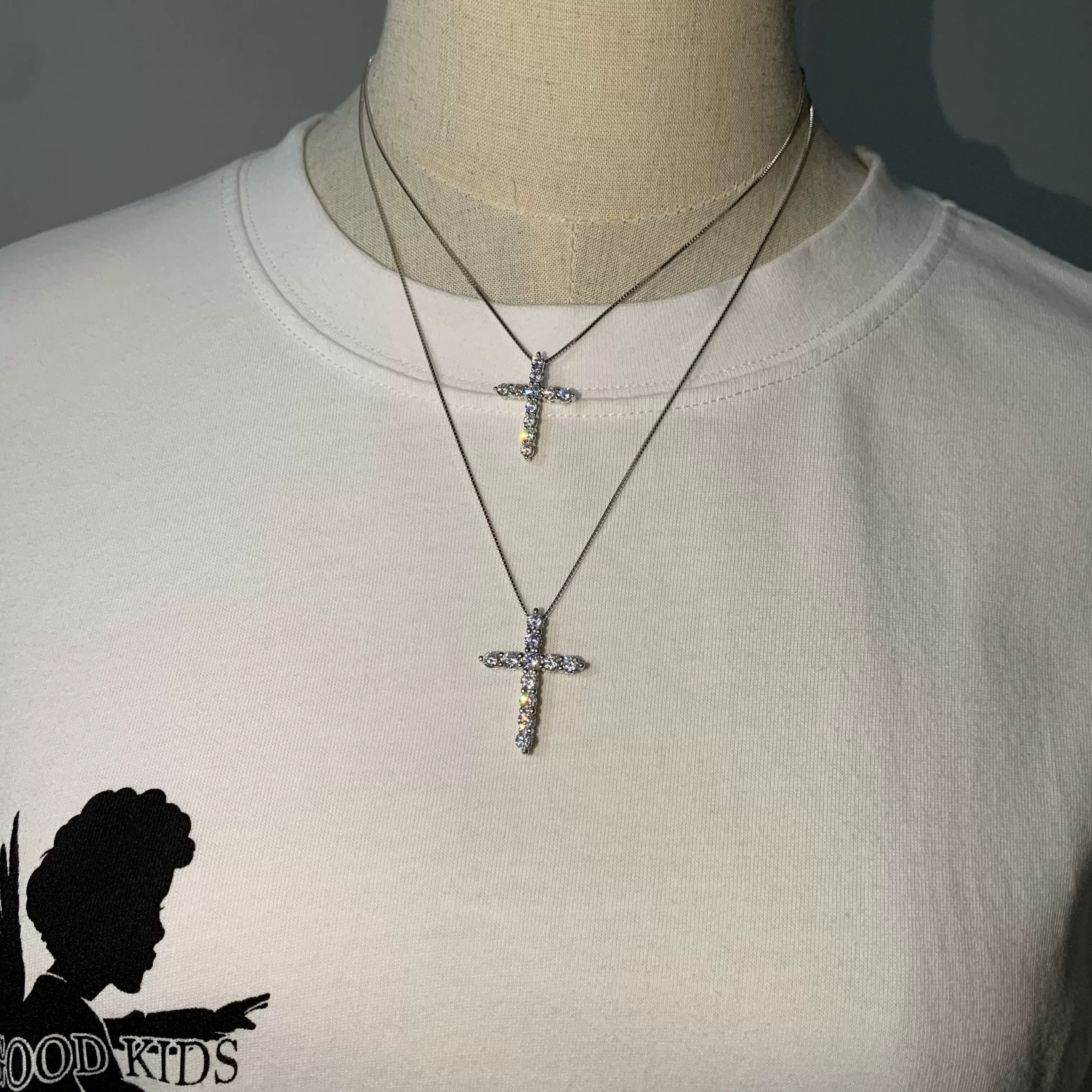 | nameOriginal | All-over sterling silver full diamond couple American cross pendant |
