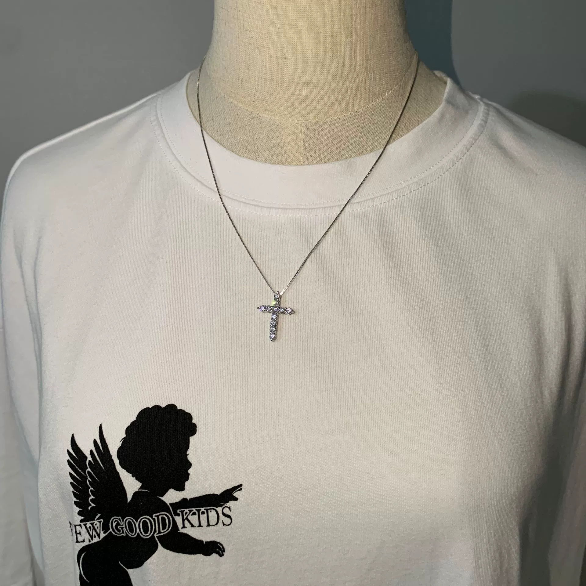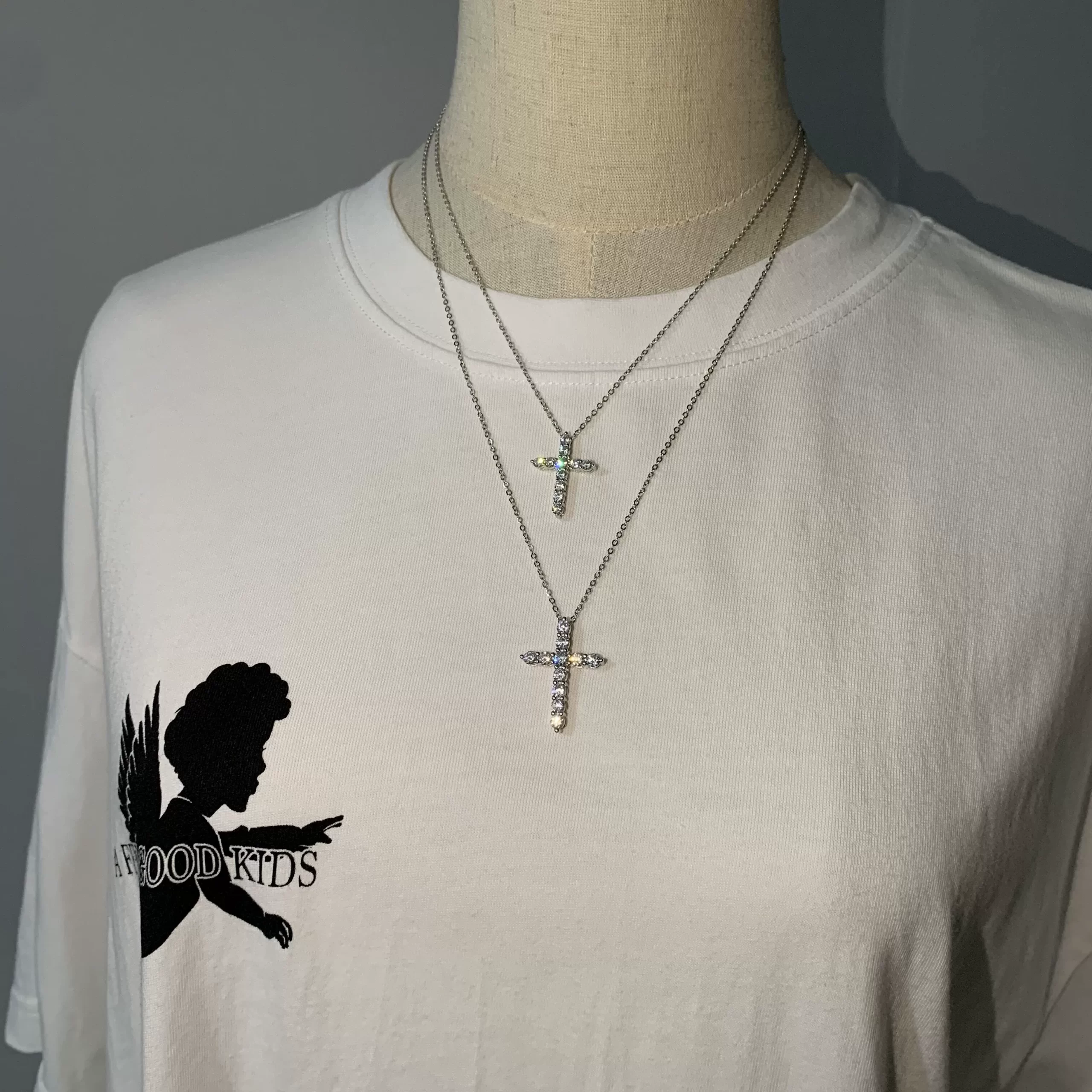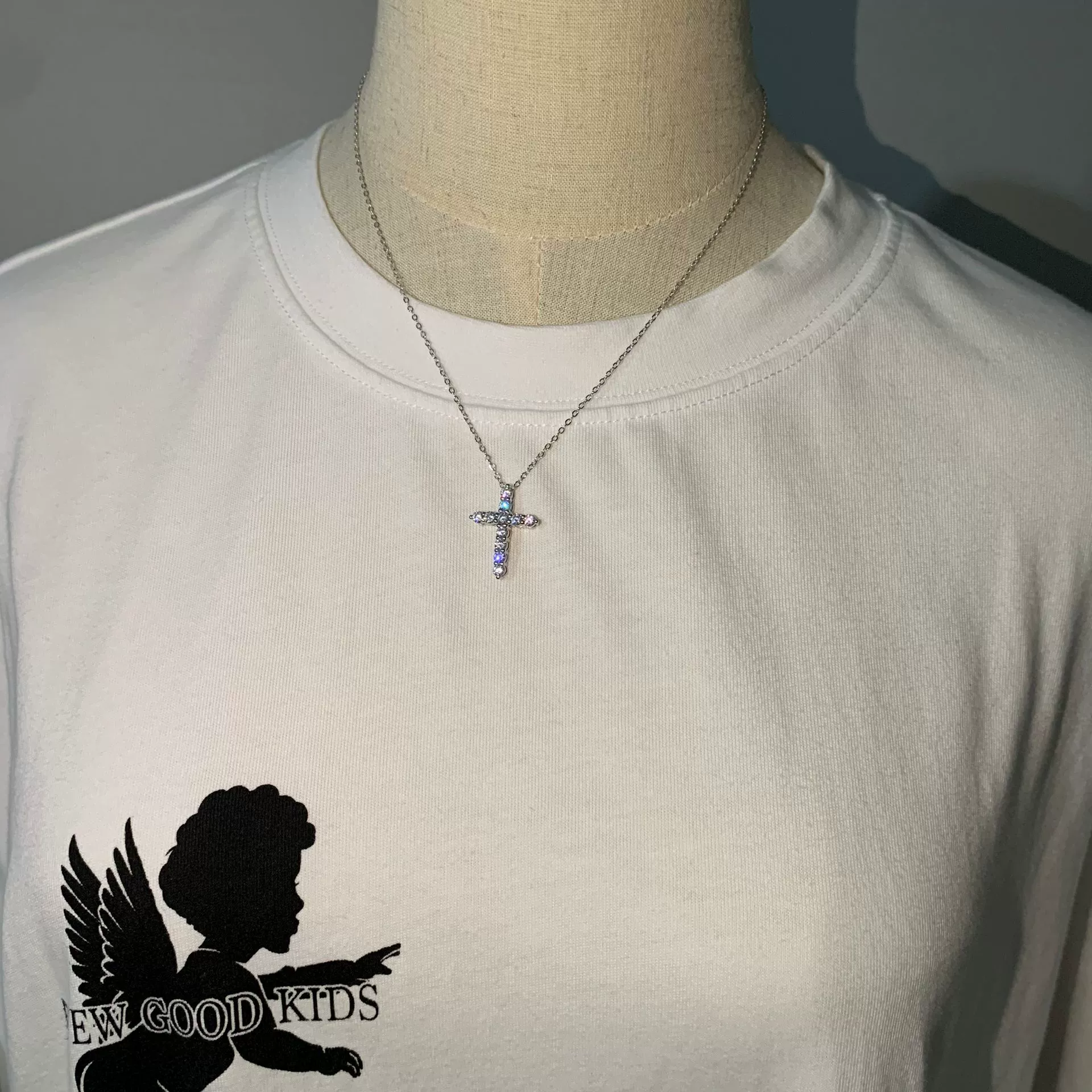 | nameOriginal | All-over sterling silver full diamond couple American cross pendant |