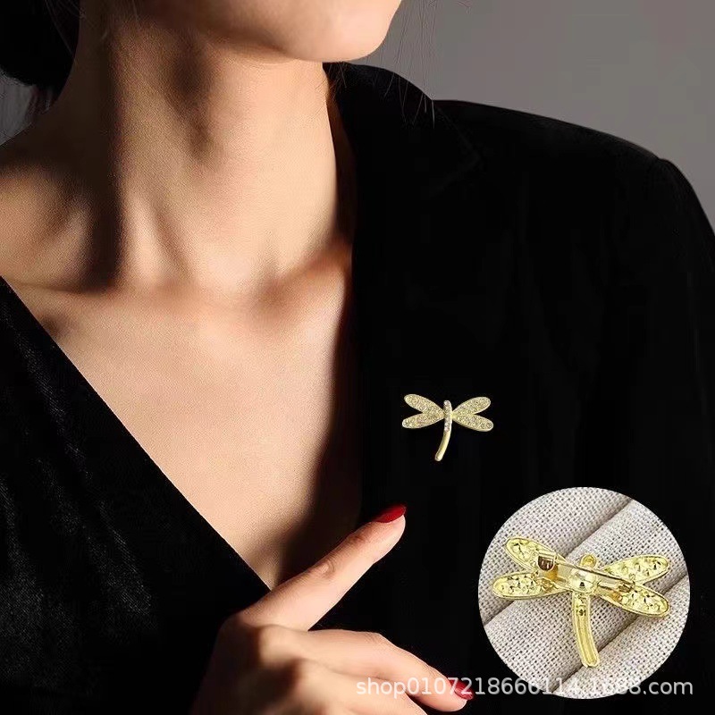 Alloy Diamond-encrusted Dragonfly Corsage Brooch Imitation Walking Pin Suit Sweater Small Chanel Style Hat Bag Decoration