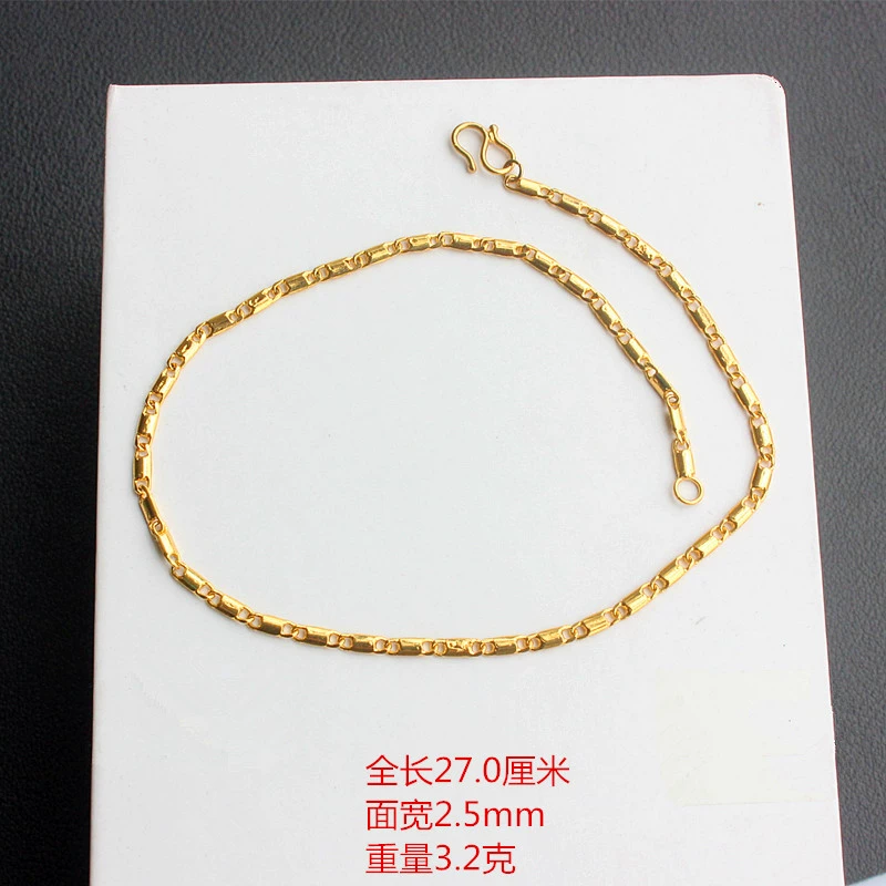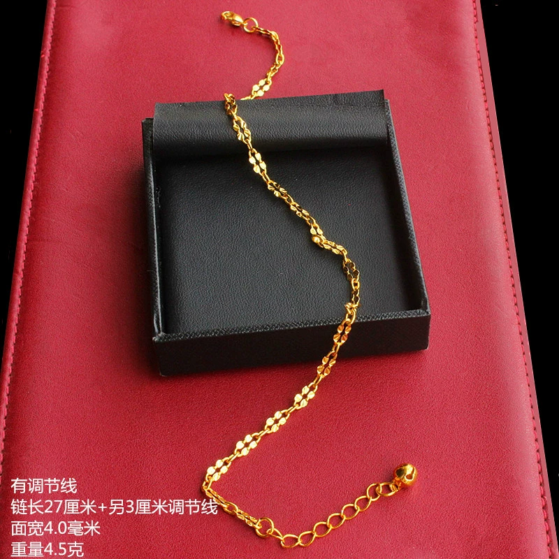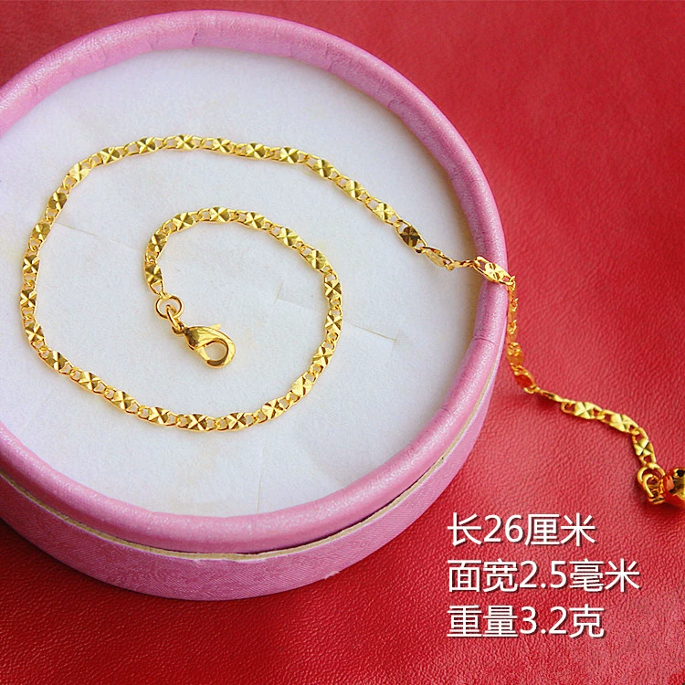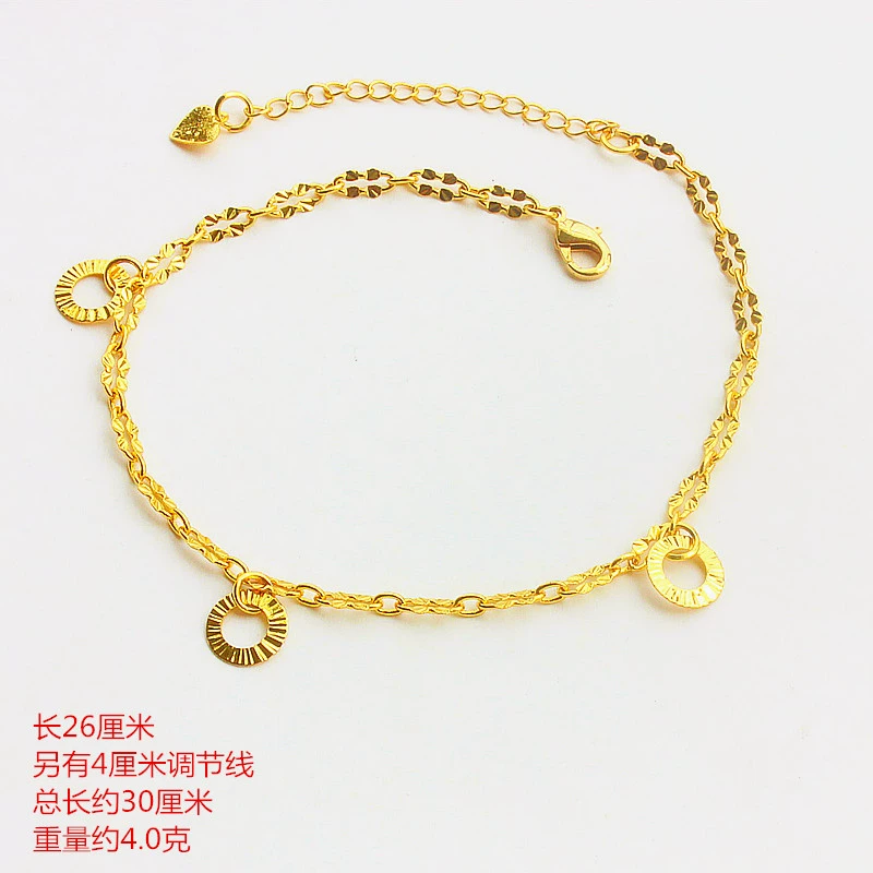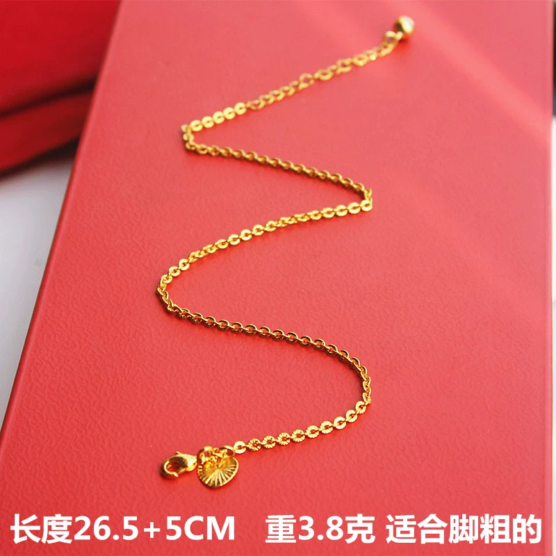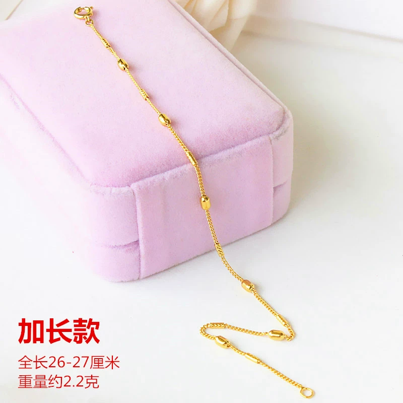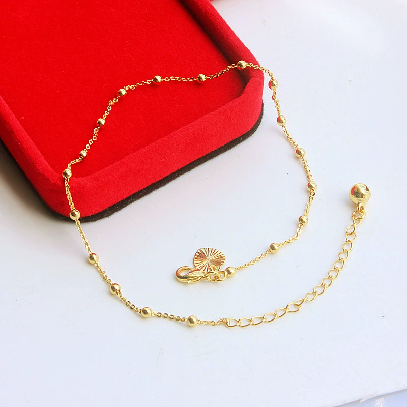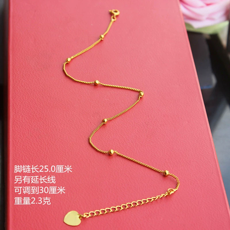 Alluvial gold anklet extra long gold-plated thick anklet extra long chain simple round beads flat to show thin feet