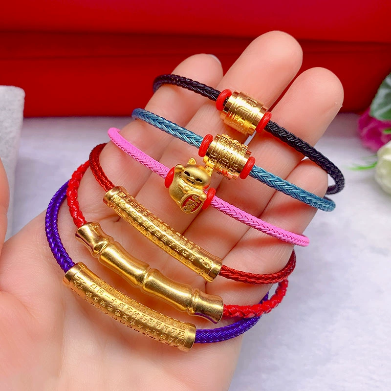 Alluvial gold transfer bead bracelet for men and women, Zhou’s buckle, wire rope, leather rope, red rope, 3D hard gold, gold-colored elbow bracelet