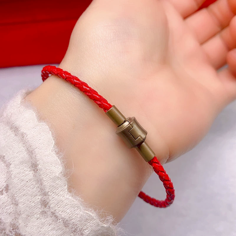Alluvial gold transfer bead bracelet for men and women, Zhou's buckle, wire rope, leather rope, red rope, 3D hard gold, gold-colored elbow bracelet