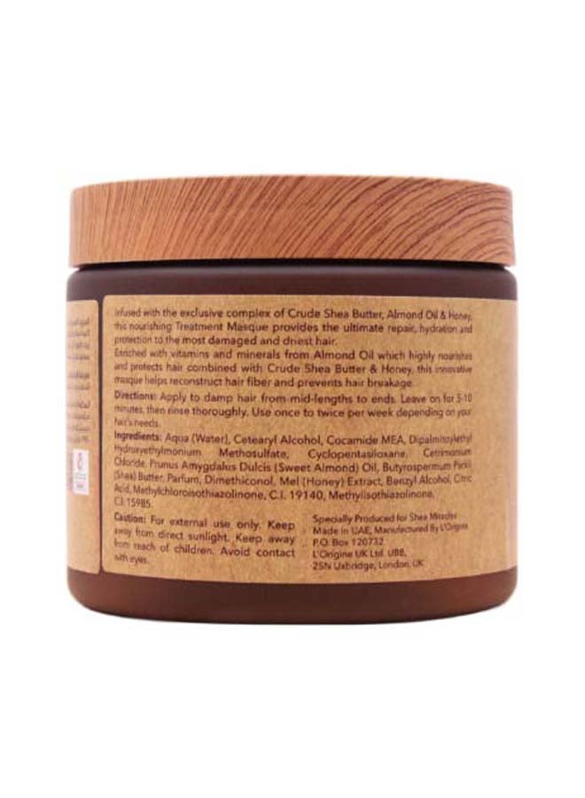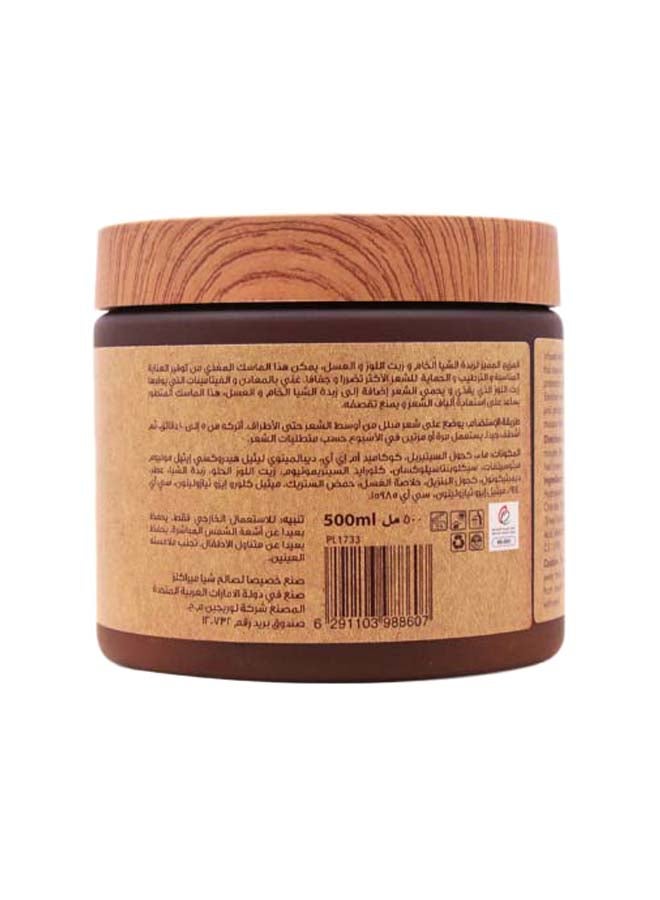 This nourishing mask provides maximum hair repair, hydration and protection. Mask composed of: Shea butter, which nourishes and conditions the hair and scalp. Almond oil, which is rich in vitamin E, which deeply nourishes, protects and prevents split ends. Honey, which deeply conditions and prevents hair breakage