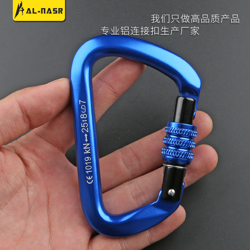 | nameOriginal | Alnas factory wholesale 25kN aviation aluminum d-type outdoor safety buckle rock climbing mountaineering aluminum alloy mountaineering buckle |