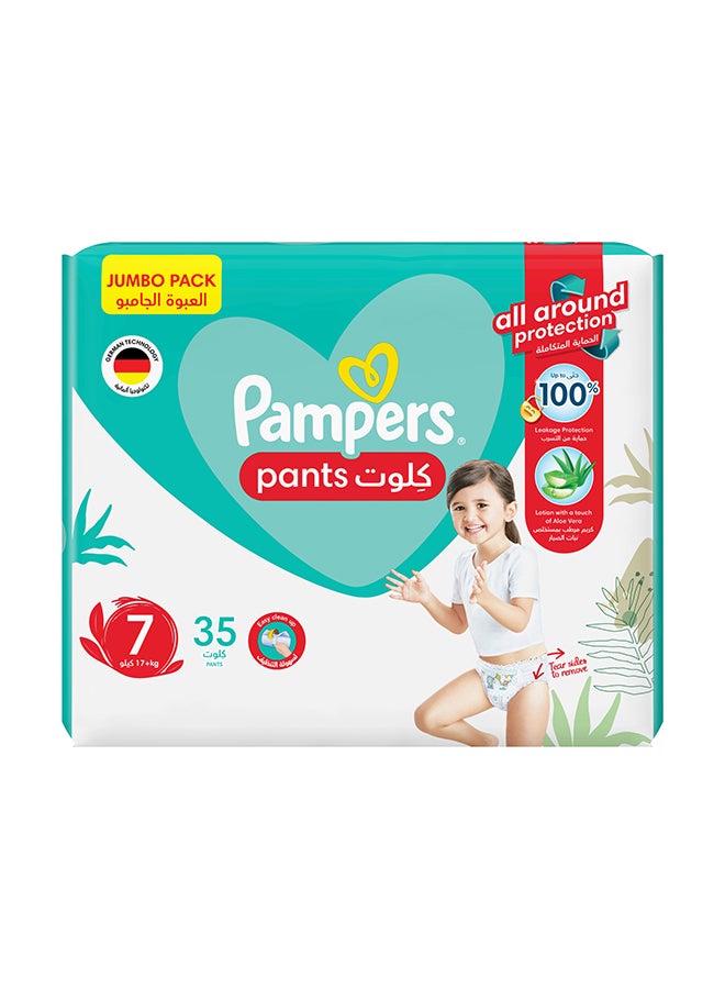 These pants also come with leakage protection, ensuring that your baby stays dry and comfortable even during the most active moments. The Size 7 pants are designed to fit babies weighing +17 kg, and each pack contains 35 pants, providing you with long-lasting protection for your little one.