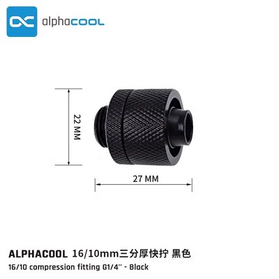 | nameOriginal | Alphacool all-copper water-cooled hose connector 3 points thin/thick 16/10 quick twist G1/4 black/silver |