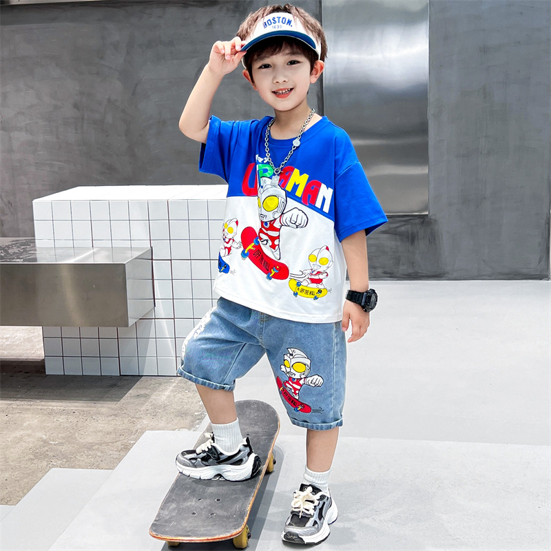 Altman Boys Summer 2024 New Western Style Children’s Dress Boys Short-sleeved suit Baby Fried Street Two-piece Thin Set