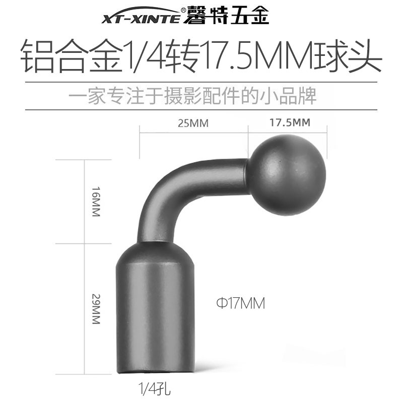Aluminum alloy ball joint base accessories mobile phone flat clamp ball joint 1/4 interface to 17.5MM ball joint