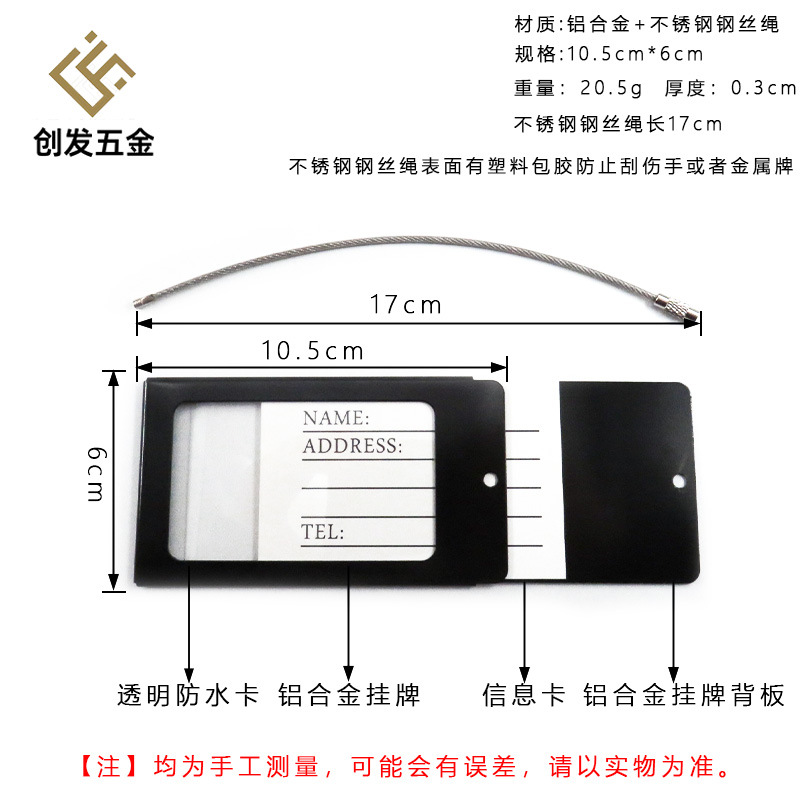 | nameOriginal | Aluminum alloy boarding pass metal luggage tag travel anti-lost stainless steel wire rope tag travel pendant wholesale |