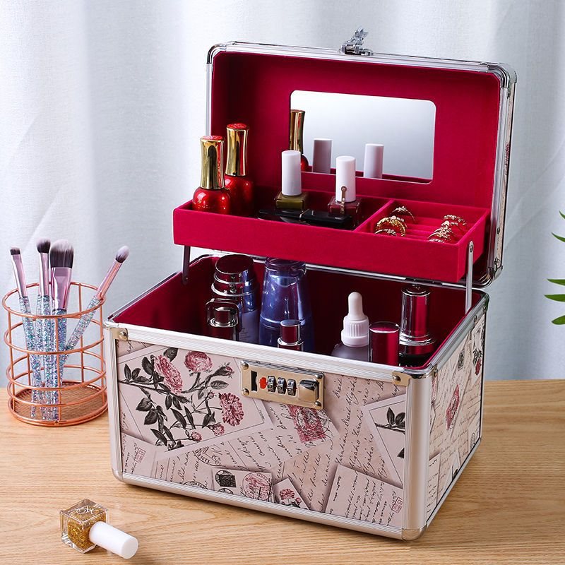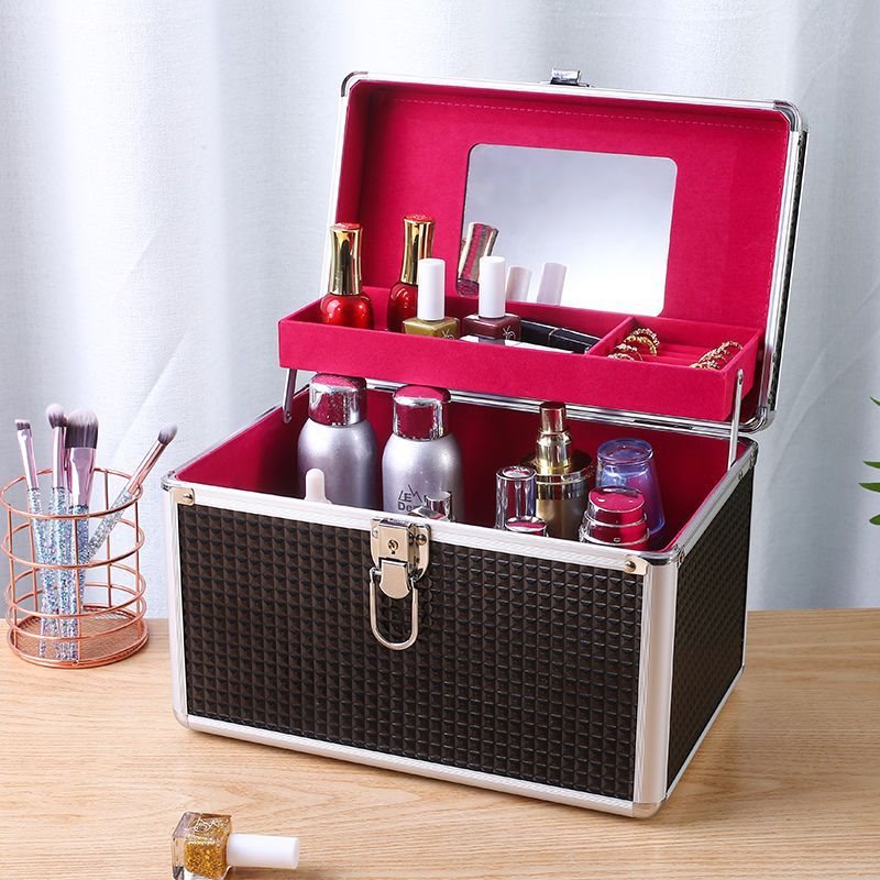 | nameOriginal | Aluminum Alloy Cosmetic Case Portable with Lock Mirror Double-Layer Large Nail Art Embroidery Emulsion Cosmetic Storage Kit |
