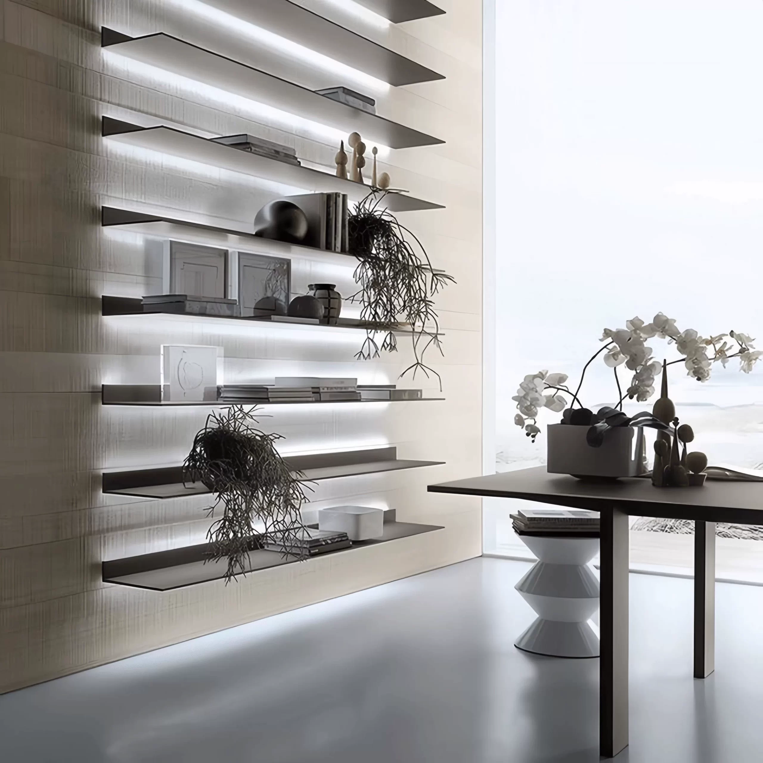 | nameOriginal | Aluminum alloy luminous laminate metal partition wall hanging storage decoration creative shelf LED wall bookshelf storage rack |