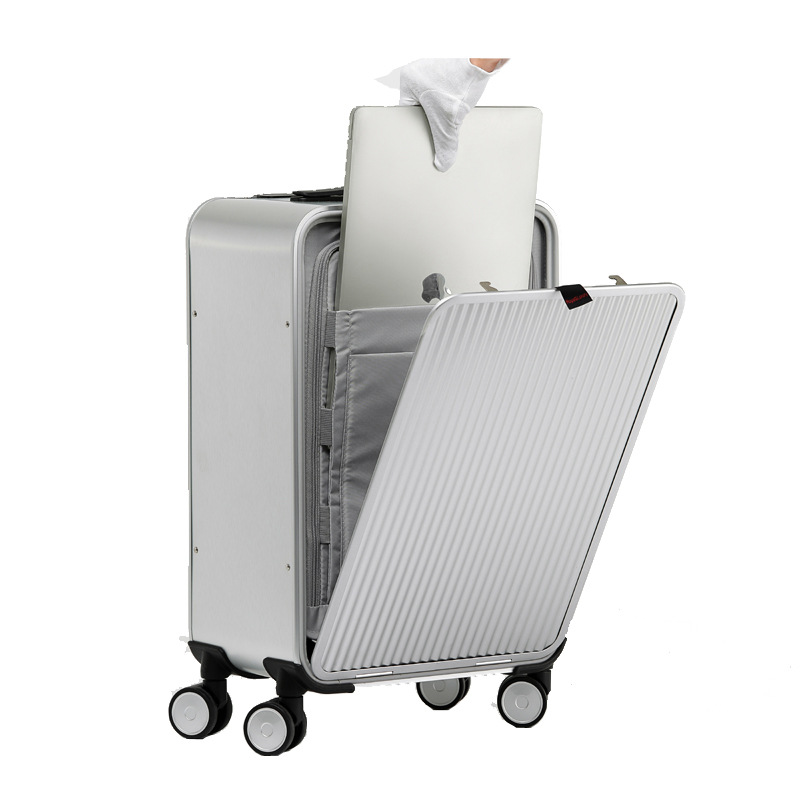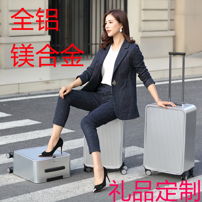 Aluminum-magnesium alloy trolley case 20-inch 24-side open business front open cover metal suitcase boarding case 16 luggage