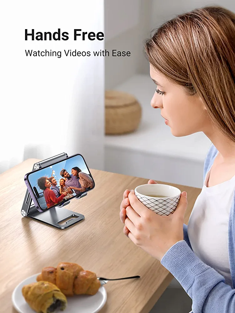 With this adjustable phone stand, you can simply adjust and choose your preferred viewing angles in different scenes. This metal phone holder stand is ideal for watching video, reading, video recording, browsing the web, playing games or facetime call.
