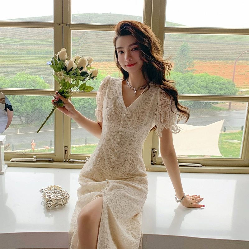 | nameOriginal | AM French slim fairy skirt with short sleeves and elegant lace |