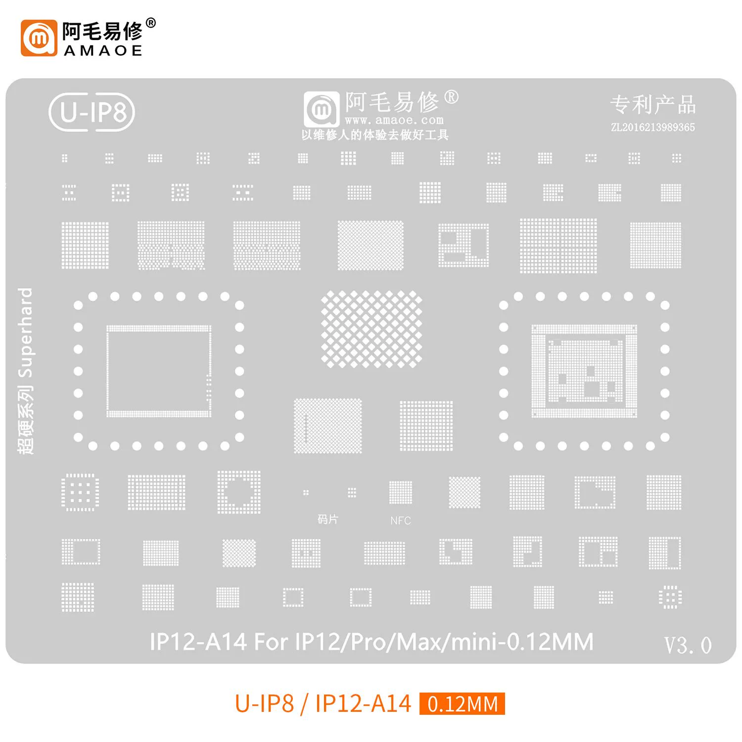 | nameOriginal | Amao easy repair tin is suitable for iPhone series/Apple mobile phone steel mesh set/IP6-14CPU steel mesh |