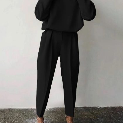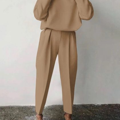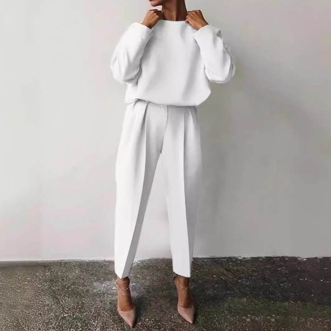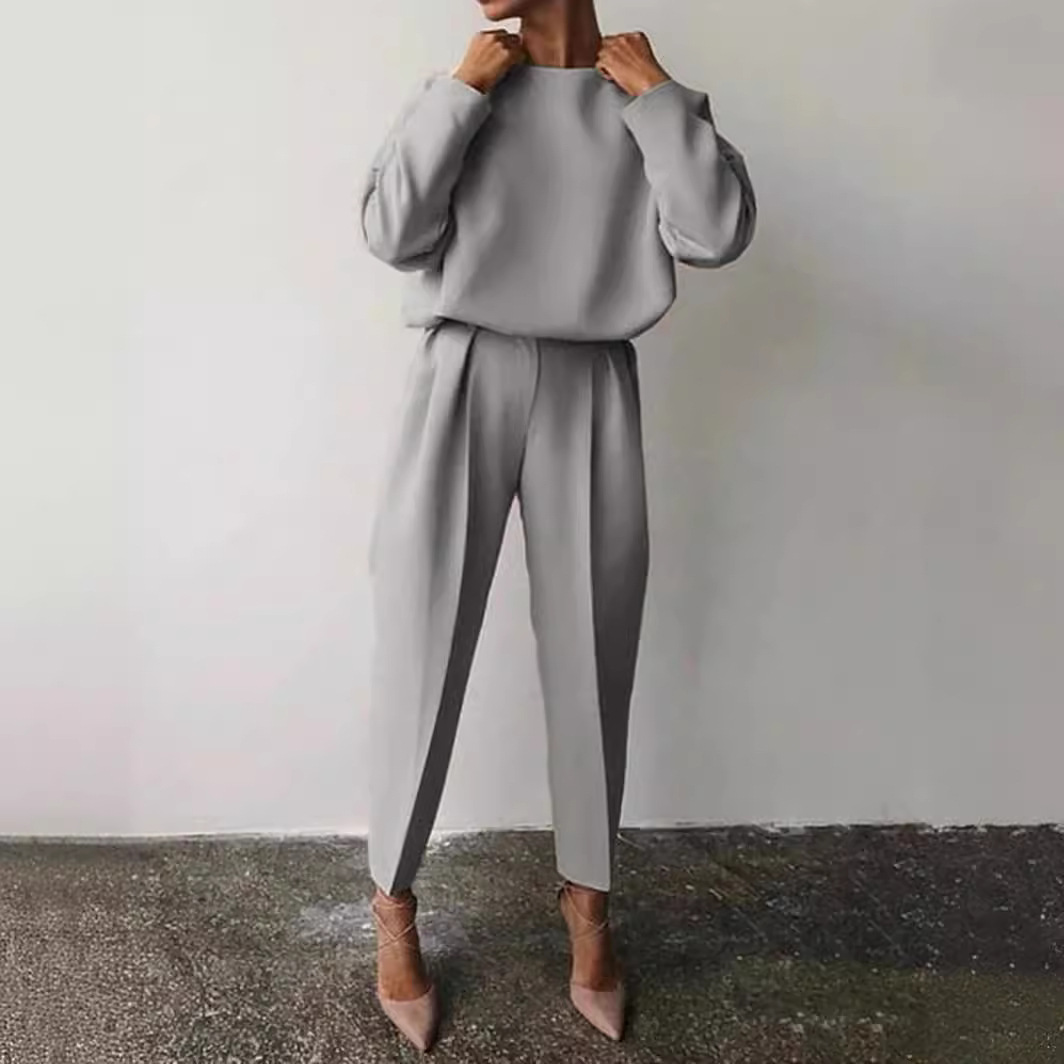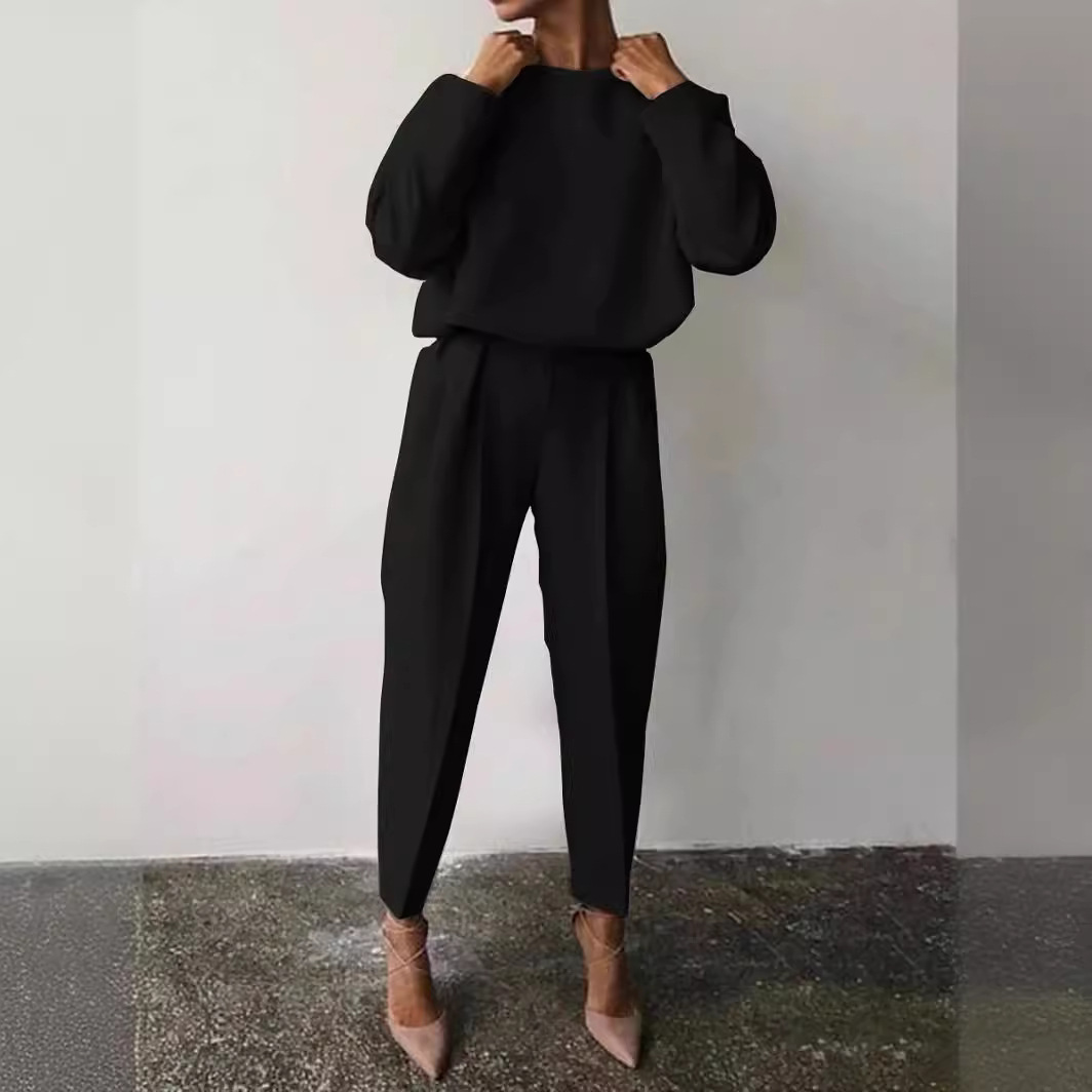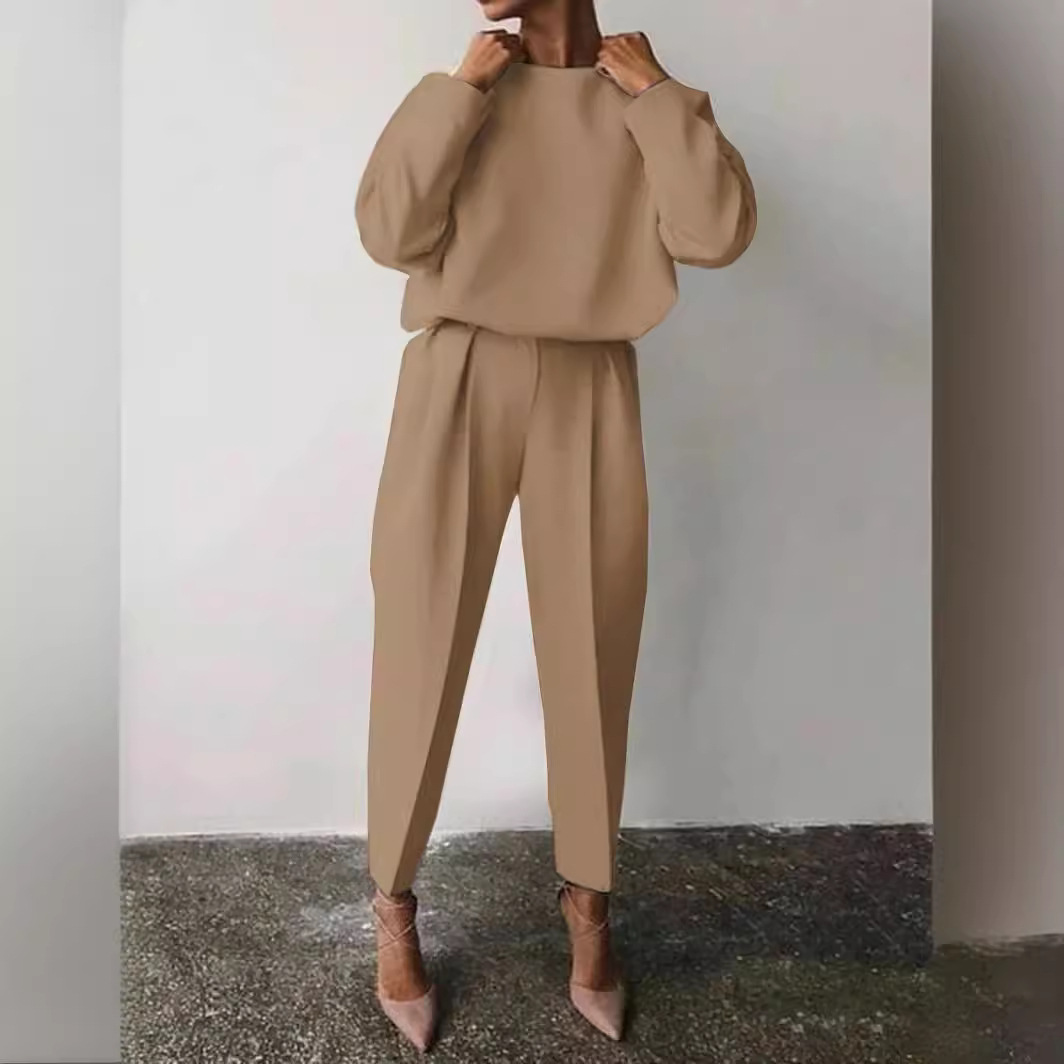 Amazon 2022 Autumn and Winter Cross-border European and American Women’s Clothing Amazon Loose Solid Color Long Sleeve Casual Two-piece Set