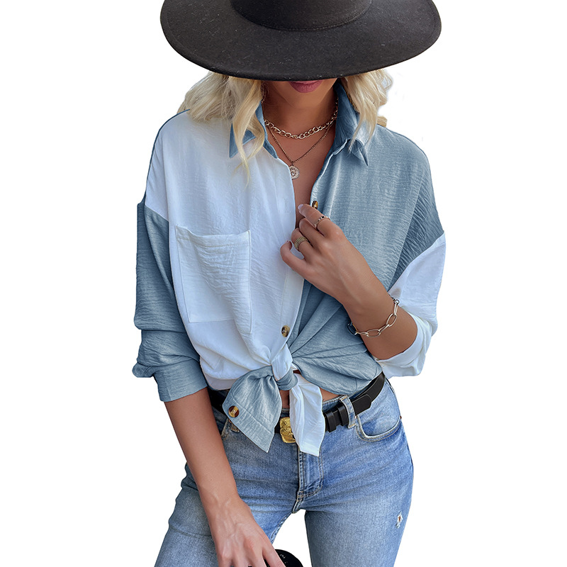 | nameOriginal | Amazon 2023 Autumn New cardigan shirt Europe and the United States foreign trade cross-border design sense lapel color matching long sleeve shirt |