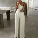 | nameOriginal | Amazon 2023 European and American summer new European and American women's elegant solid color slant waist wide leg jumpsuit |