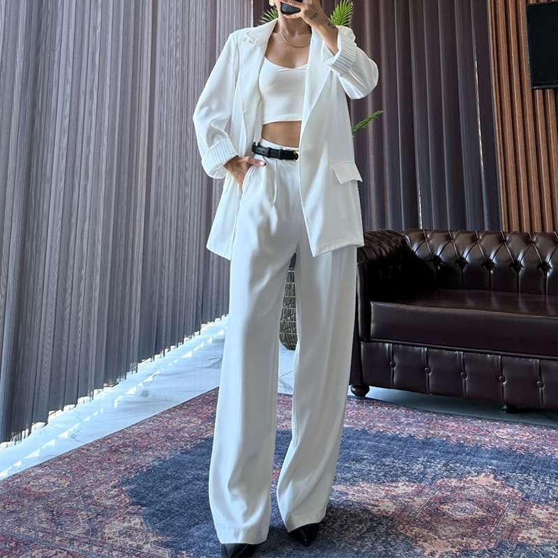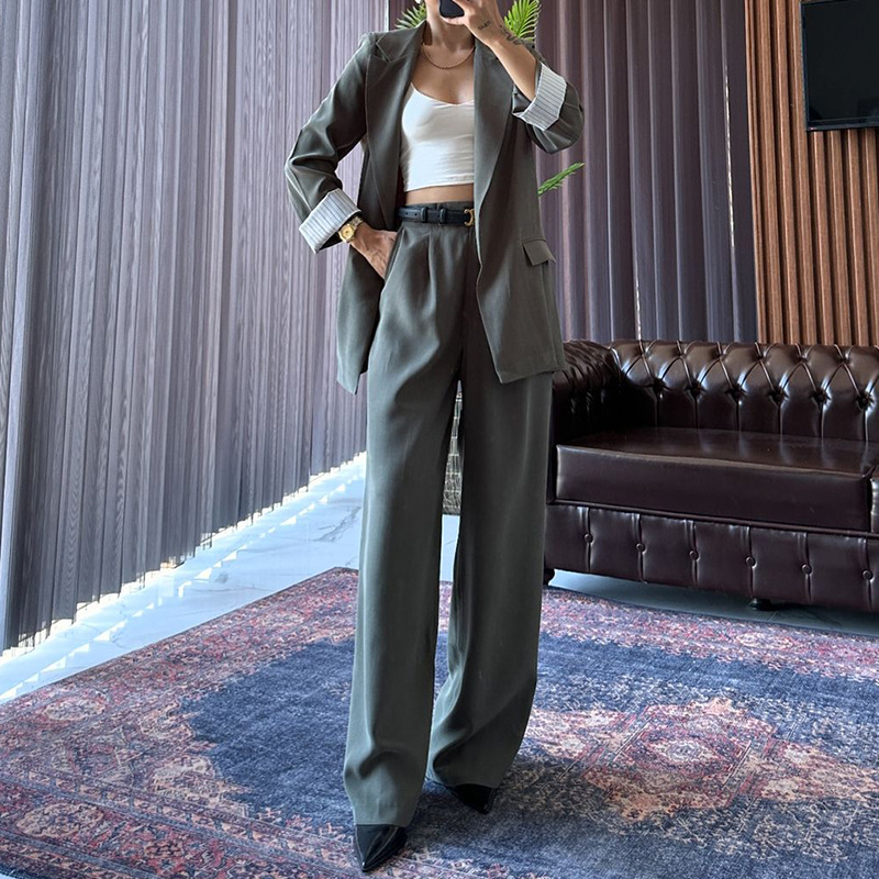 | nameOriginal | Amazon 2024 European and American autumn and winter new cross-border ladies fashion temperament solid color loose coat pants suit |
