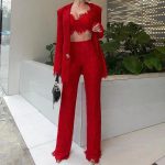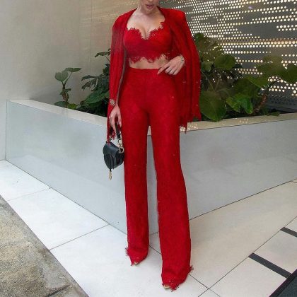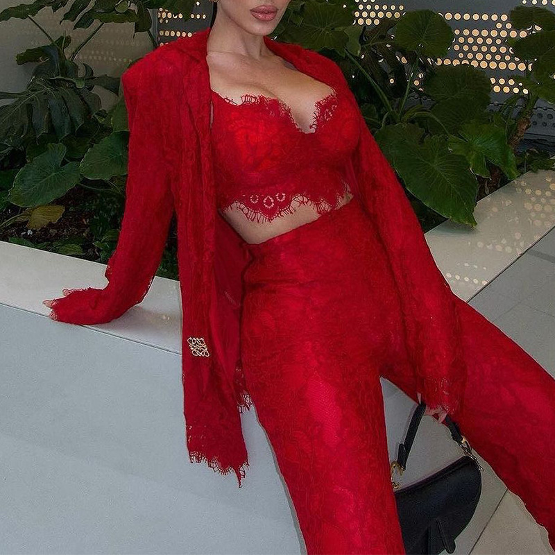 Amazon 2024 European and American Spring and Summer New Cross-border Women’s Fashion Sexy Lace Jacket Straight Pants suit