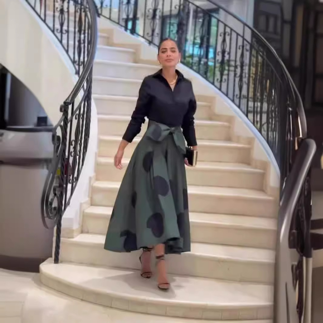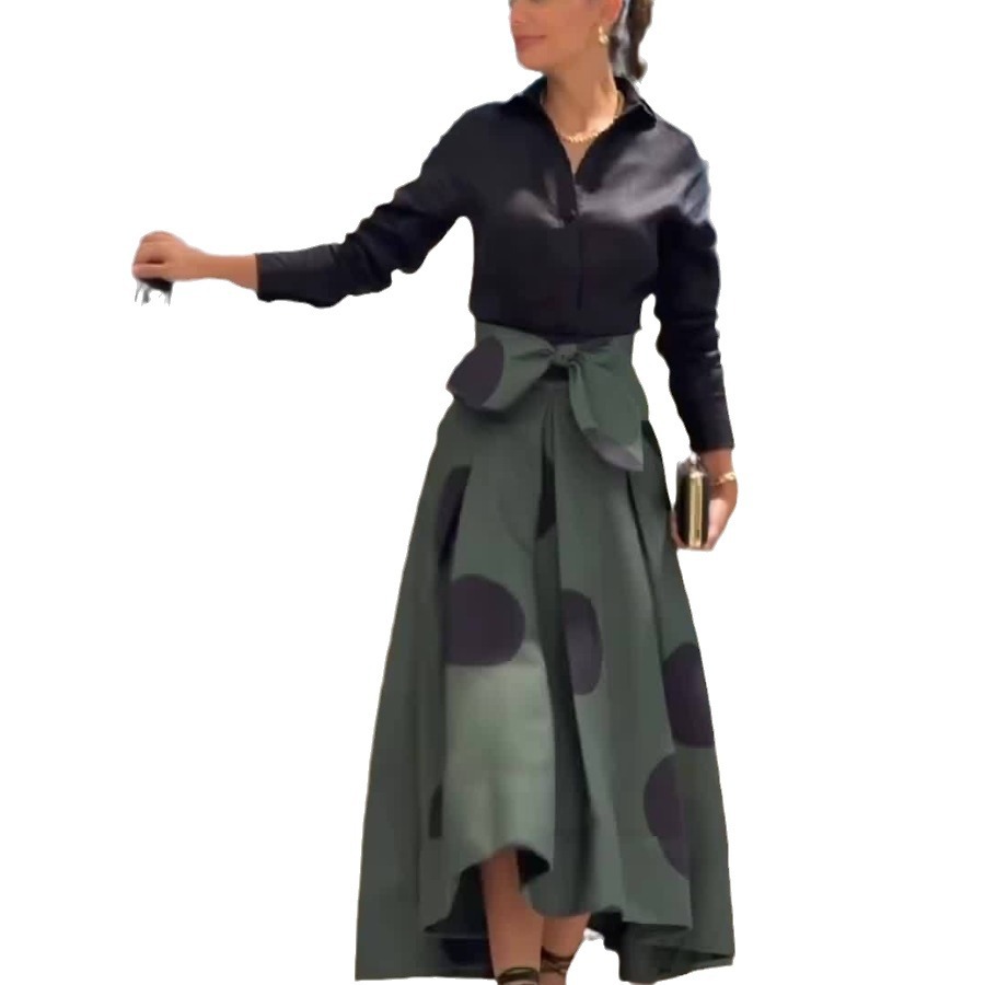 | nameOriginal | Amazon 2024 European and American Summer New Fashion Long Sleeve Shirt Printed Dot Skirt Women's suit |