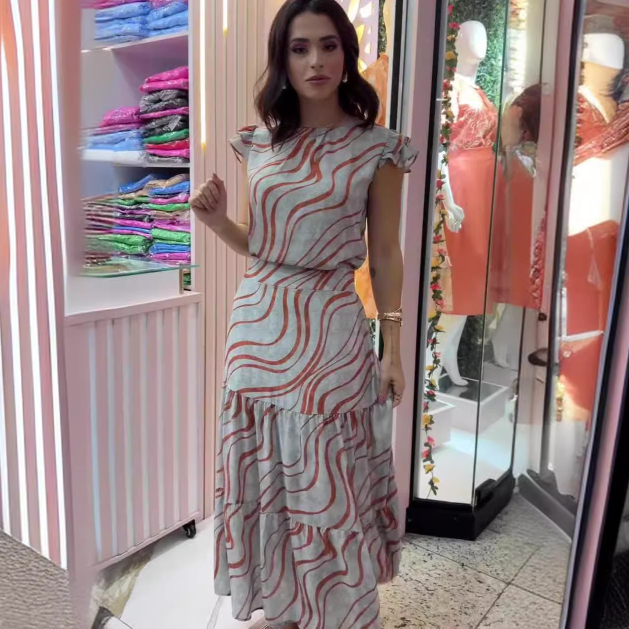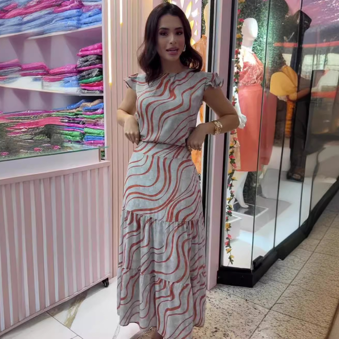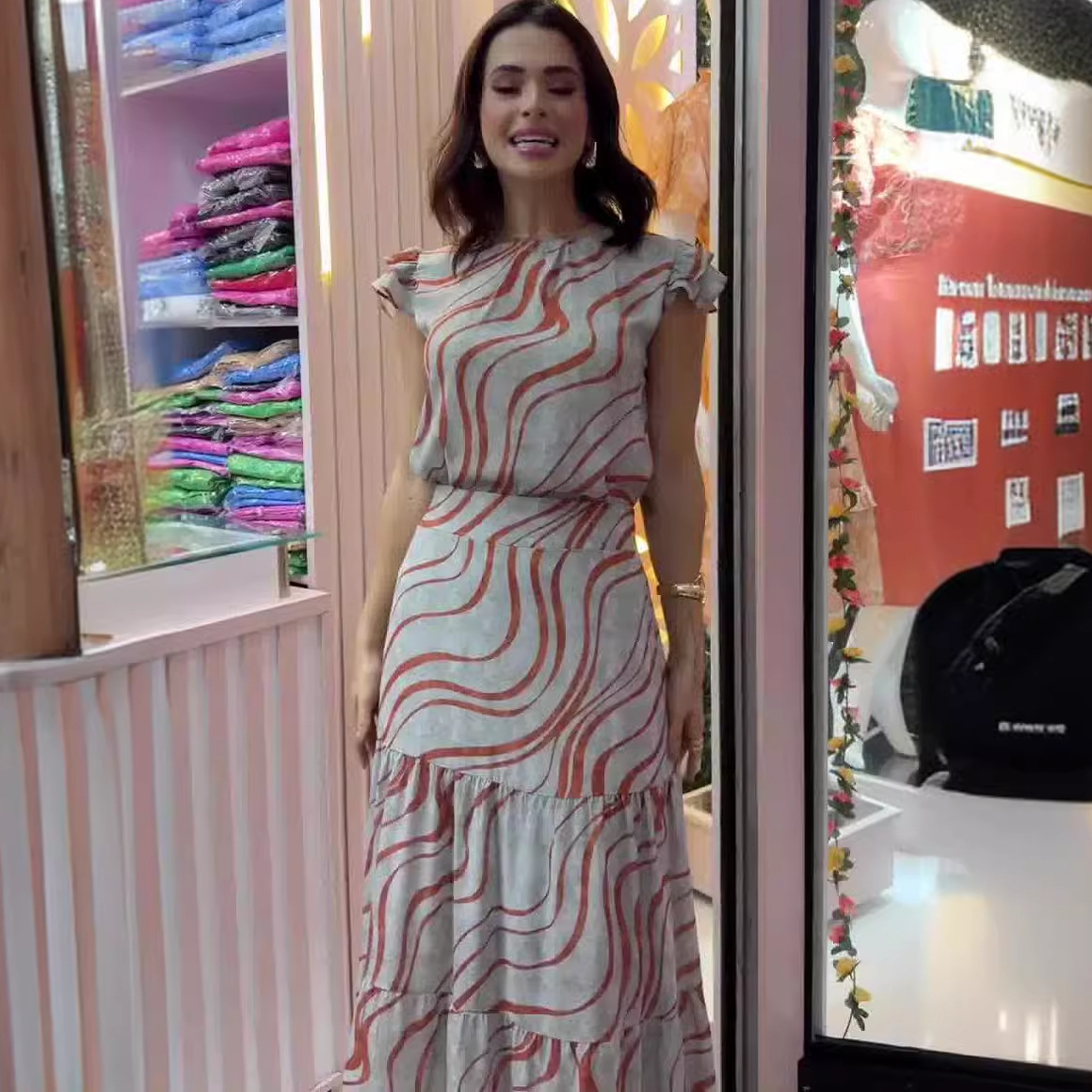 | nameOriginal | Amazon 2024 European and American Summer New Fashion Printed Flying Sleeve Top Skirt Two-Piece Women's Clothing |