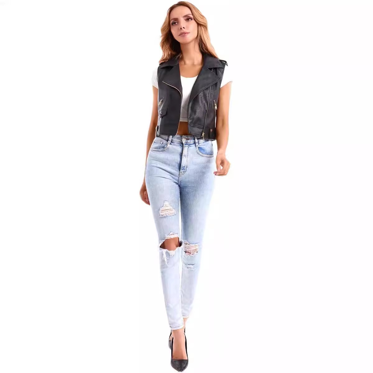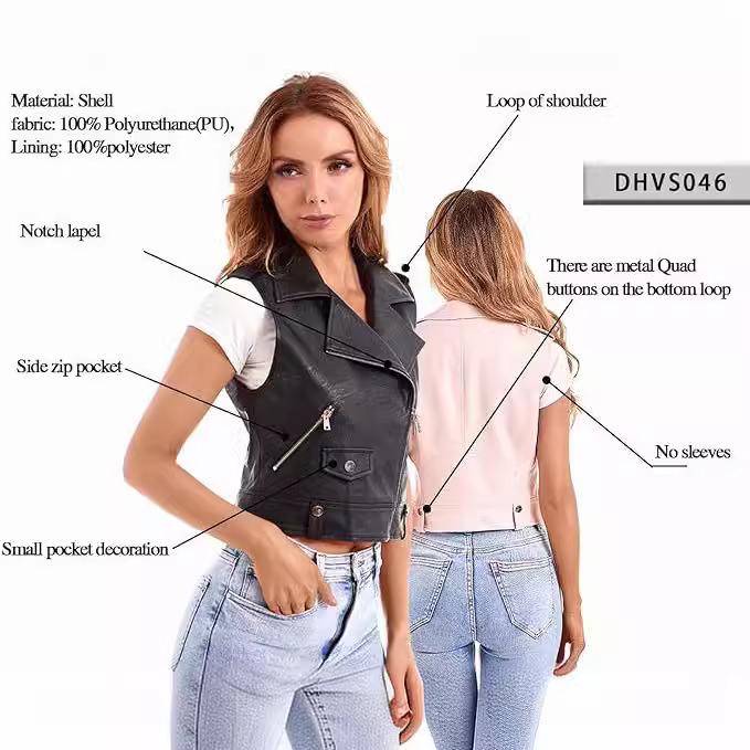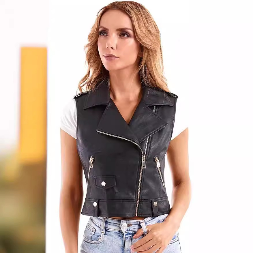 | nameOriginal | Amazon 2024 European and American women's artificial leather casual jacket women's high quality stitched leather vest zipper |