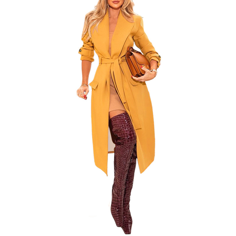 | nameOriginal | Amazon 2024 European and American women's clothing autumn and winter new cross-border women's fashion temperament solid color belt large swing trench coat |