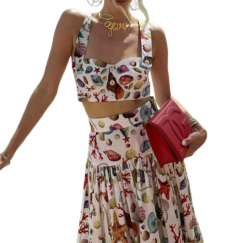 | nameOriginal | Amazon 2024 European and American Women's Clothing Spring and Summer New Cross-border Women's Fashion Elegant Printed Strap Skirt Two-piece Set |