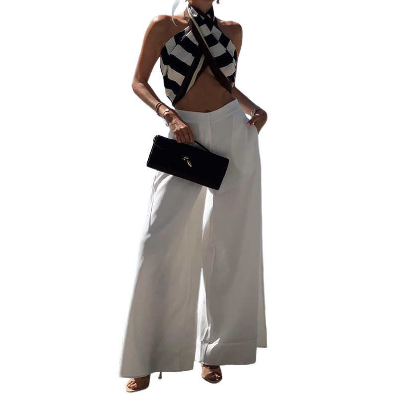 Amazon 2024 European and American women’s clothing spring and summer new cross-border women’s fashion temperament solid color vacation style wide leg pants