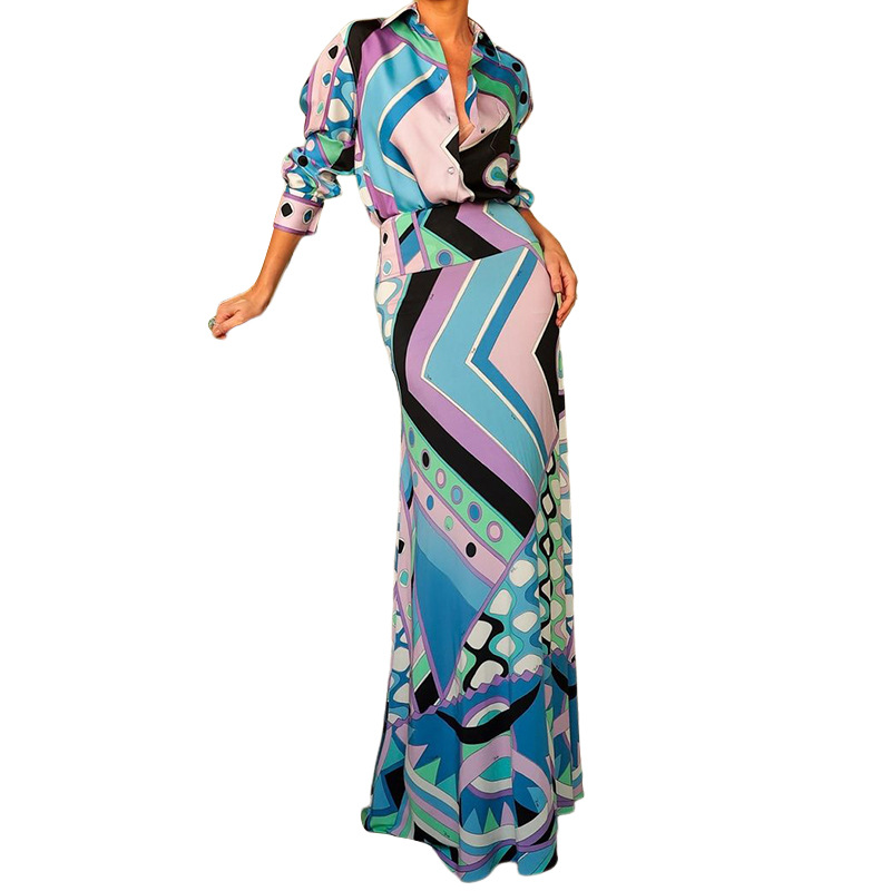 | nameOriginal | Amazon 2024 European and American women's spring and summer new cross-border fashion temperament printed shirt hip skirt suit |