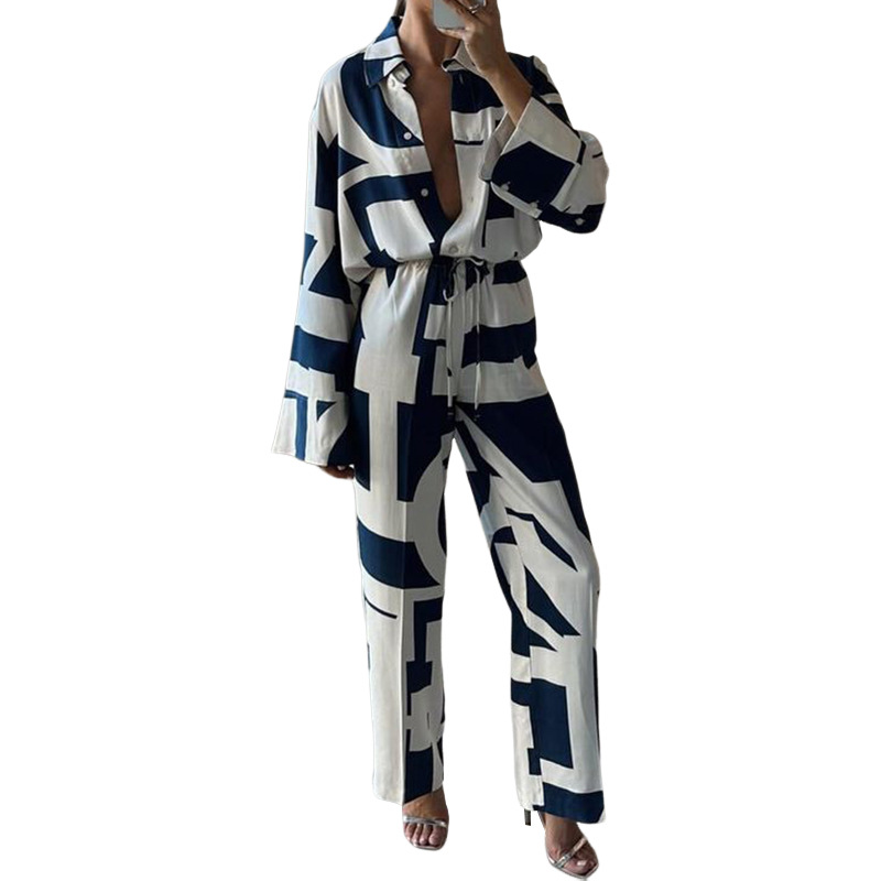 | nameOriginal | Amazon 2024 European and American Women's Spring and Summer New Cross-border Women's Fashion Elegant Printed Shirt Straight Leg Pants Two-piece Set |