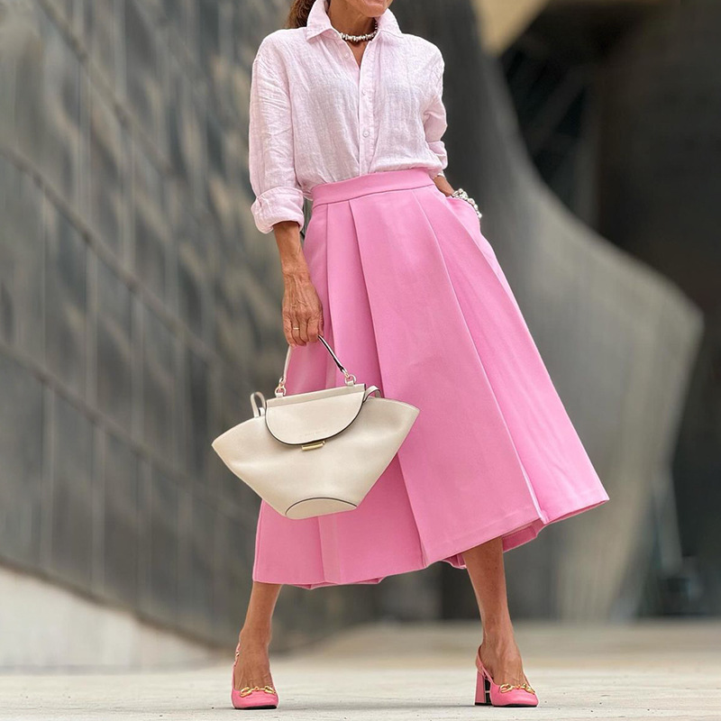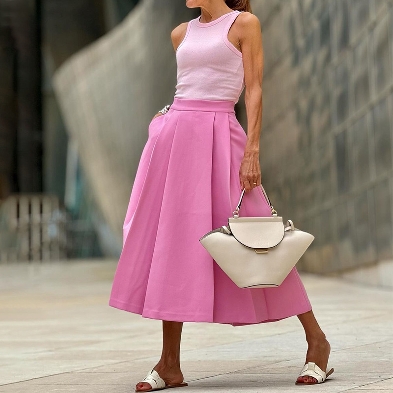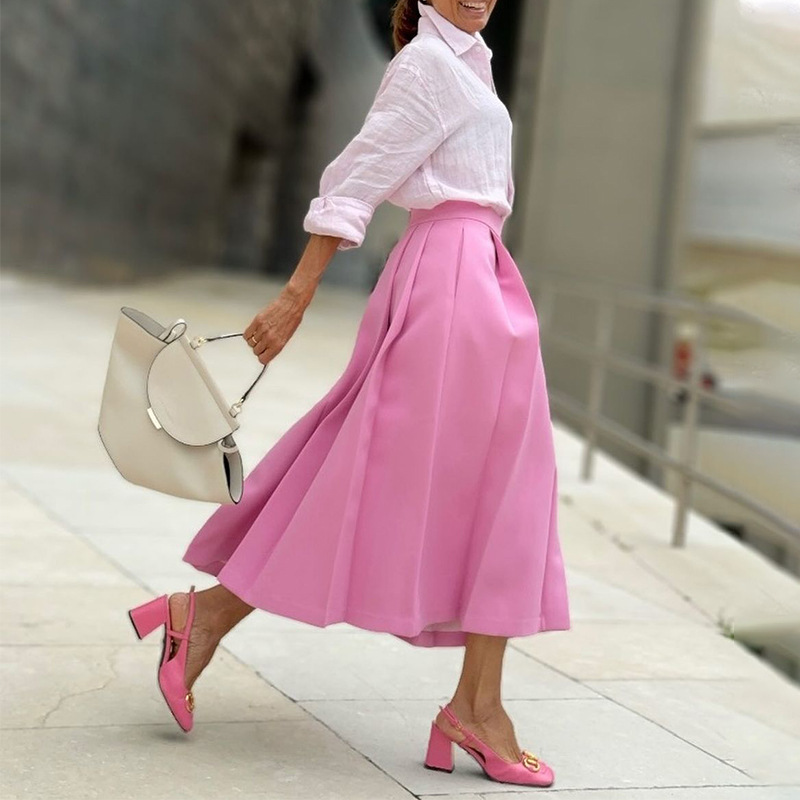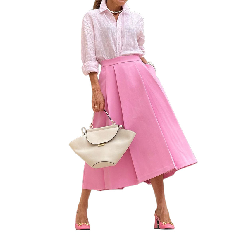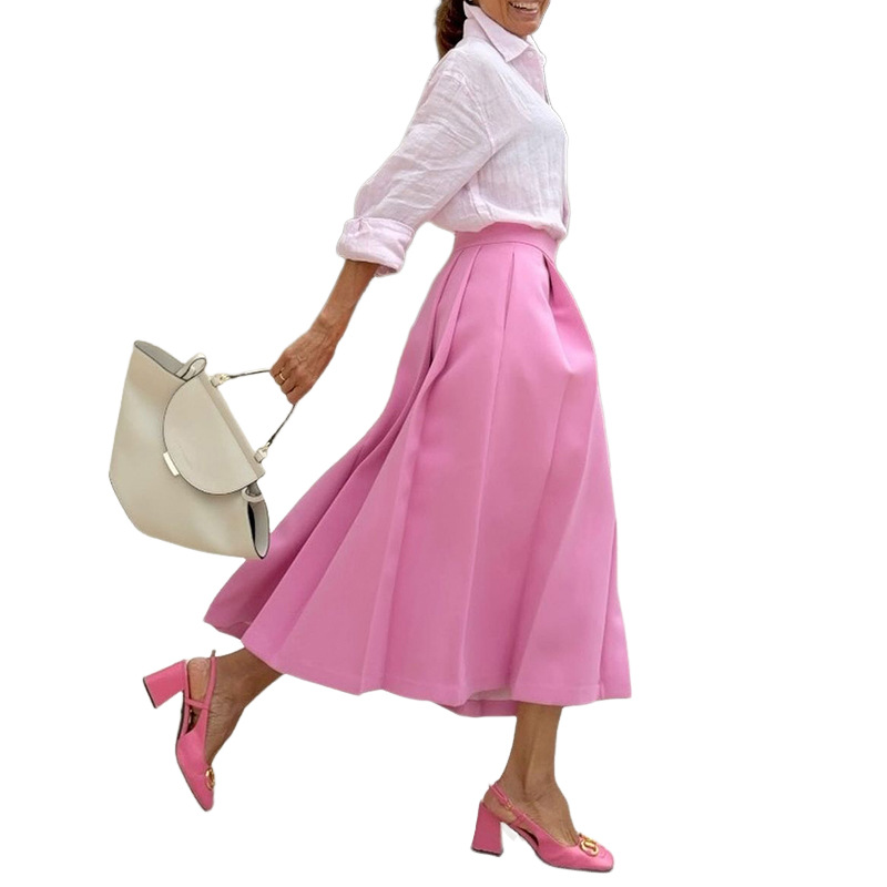 Amazon 2024 European and American Women’s Spring and Summer New Cross-border Women’s Fashion Elegant Solid Color Loose Waist Skirt