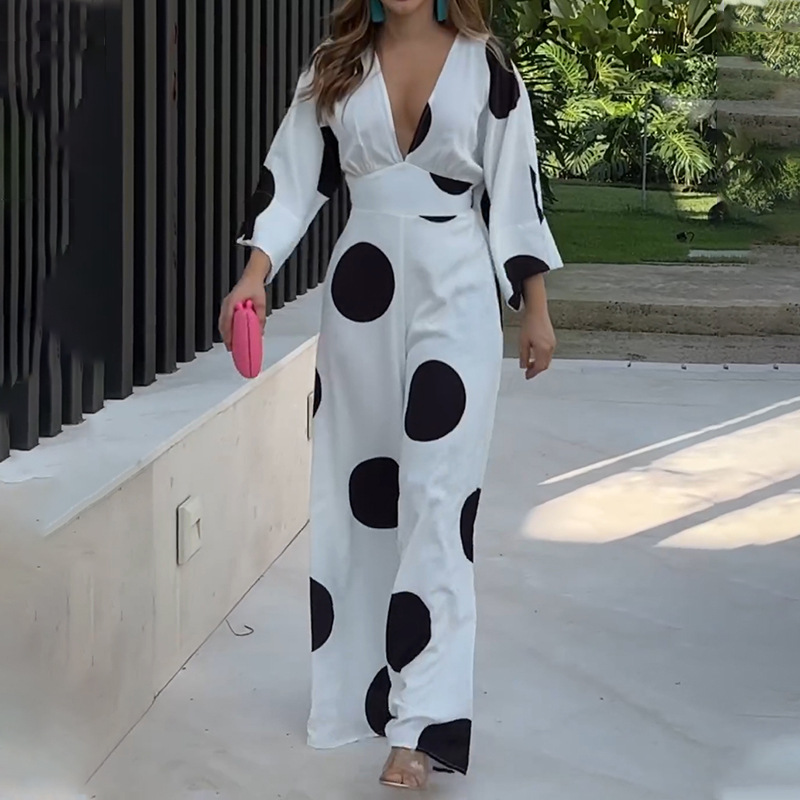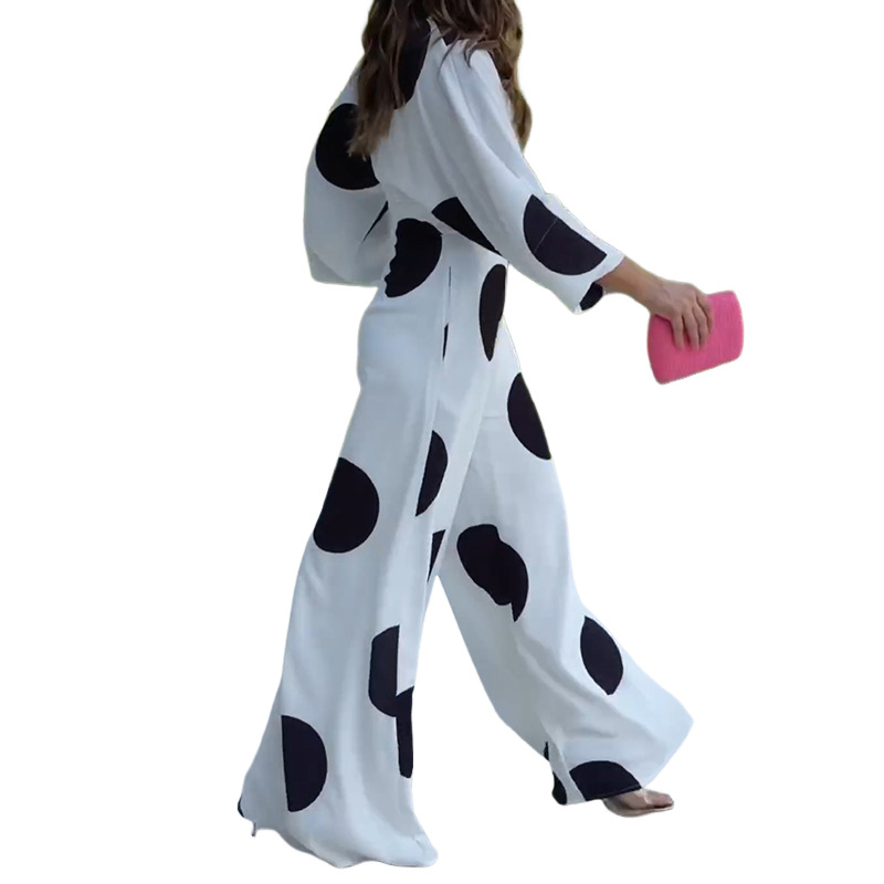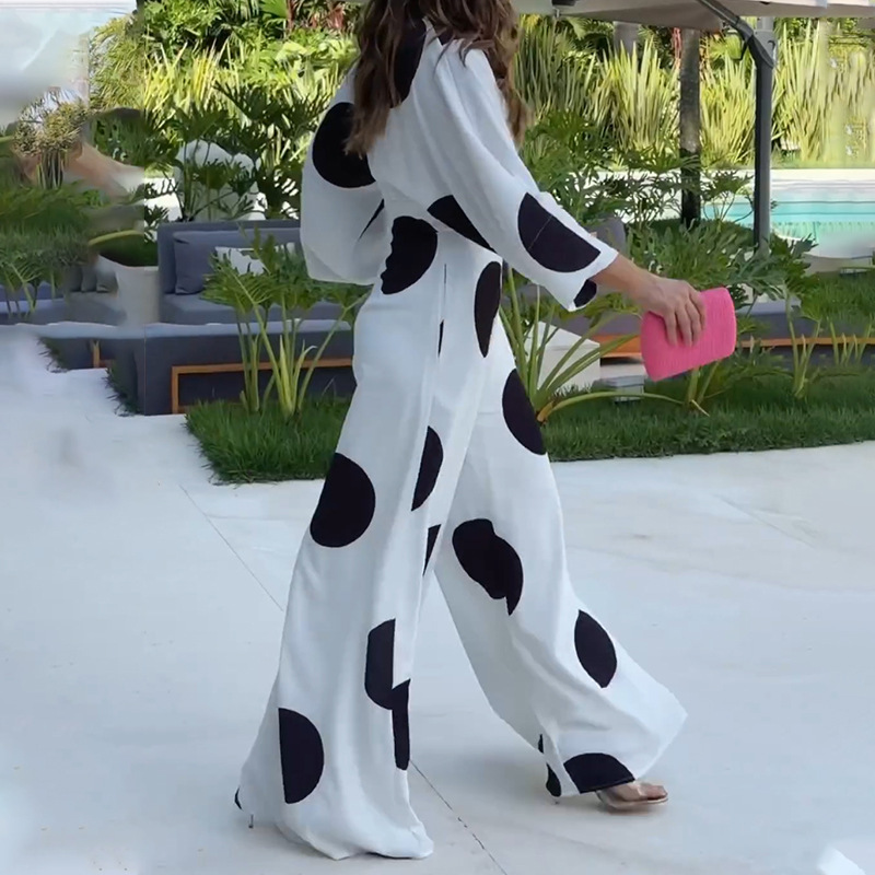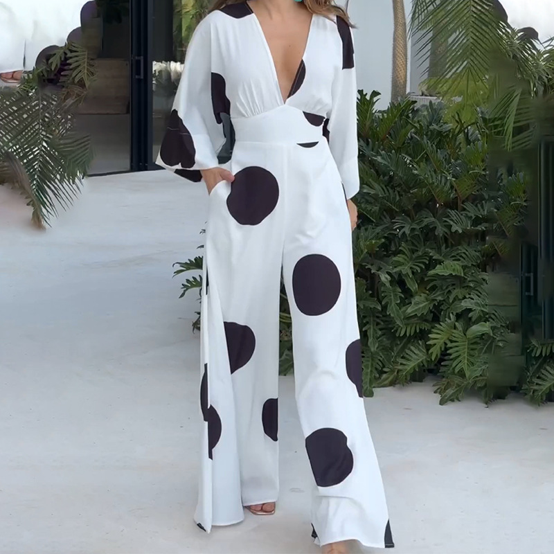 | nameOriginal | Amazon 2024 European and American Women's Spring and Summer New Cross-border Women's Fashion Printed Vacation V-neck Wide Leg Pants |