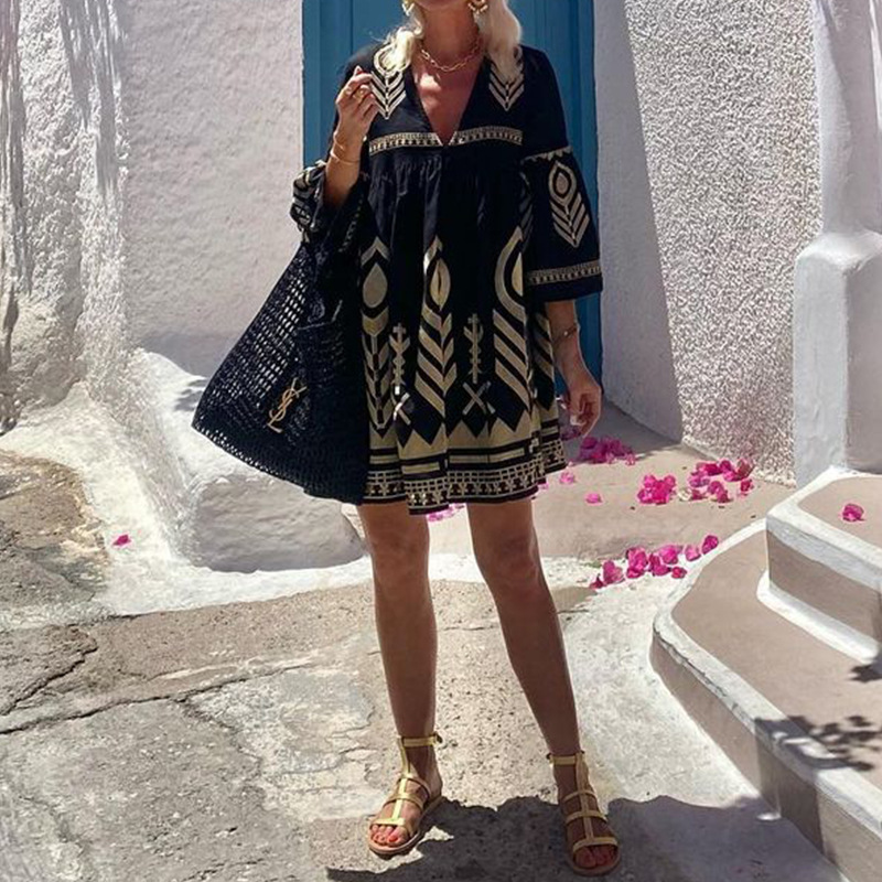 | nameOriginal | Amazon 2024 European and American Women's Spring and Summer New Cross-border Women's Fashion Temperament Printed V-Neck Short dress |