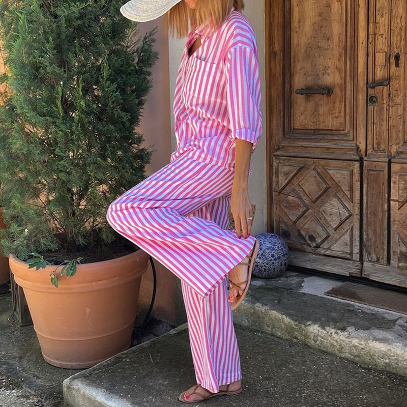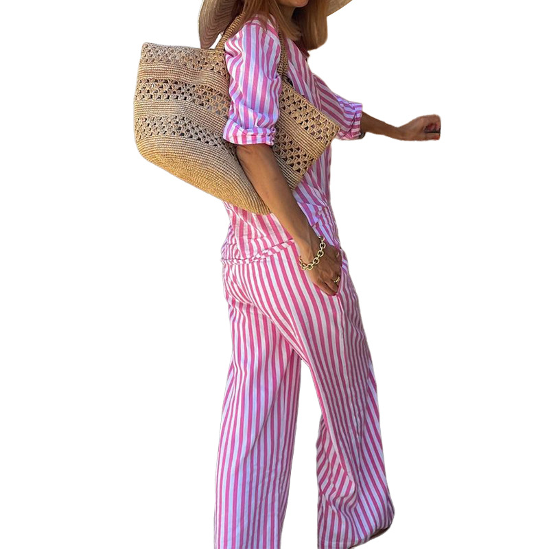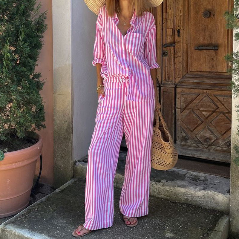 | nameOriginal | Amazon 2024 European and American women's spring and summer new cross-border women's fashion temperament striped lapel straight pants suit |