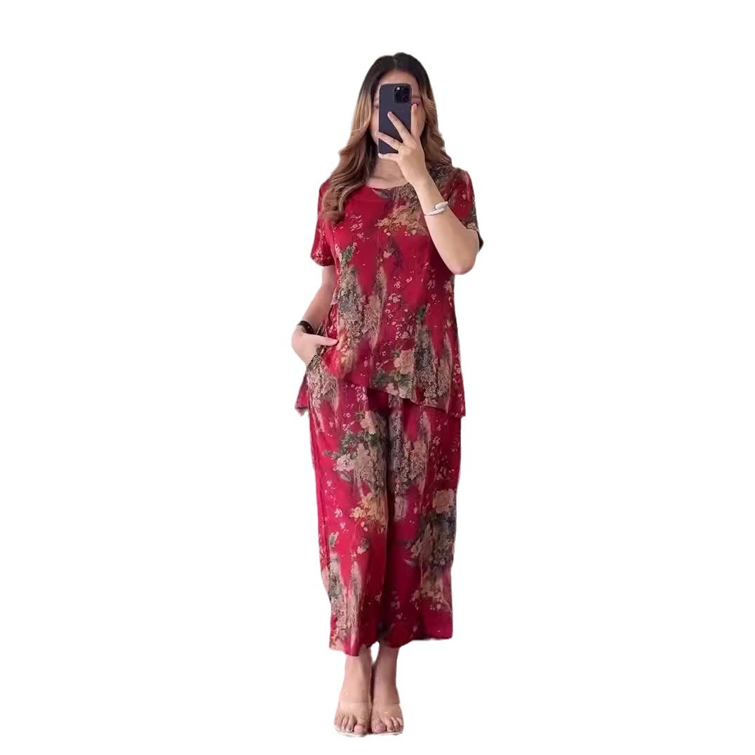 | nameOriginal | Amazon 2024 Summer European and American New Printed Split Short Sleeve Top Wide Leg Pants Explosion Fashion Two-Piece Set |