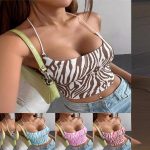 Amazon 2024 Summer New Women’s Zebra Stripe Printed Back Lace Short Camisole Top