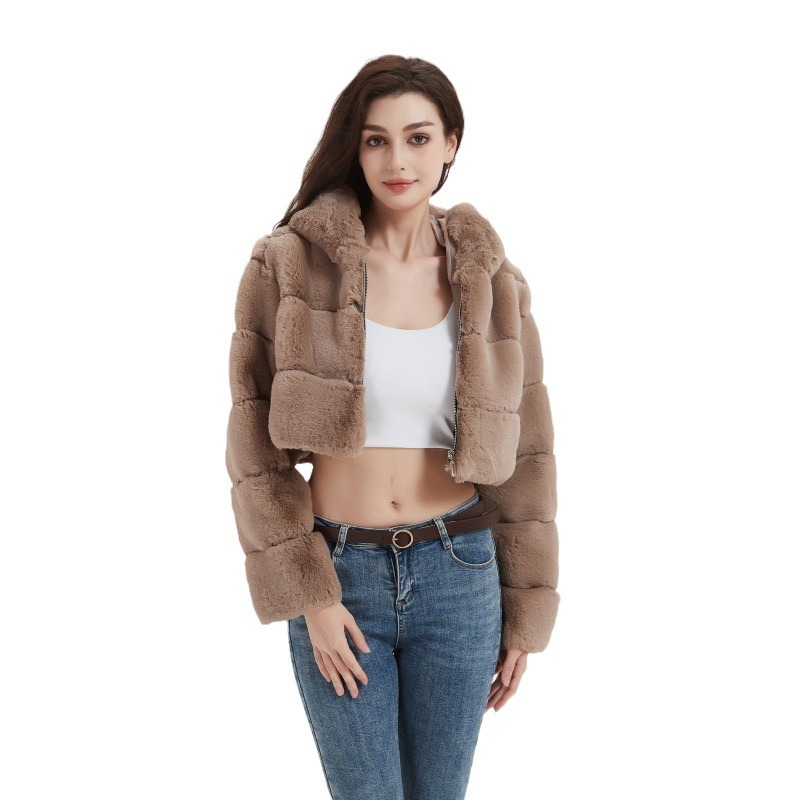 | nameOriginal | Amazon AliExpress Cross-border 2024 Winter Faux Fur Coat Women's Short European and American Spliced Hooded Rex Rabbit Hair |