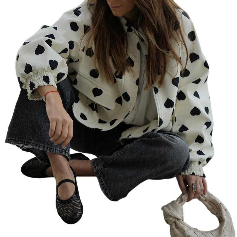 Amazon autumn 2024 Europe and the United States cross-border new lapel long sleeve coat casual style love printed jacket