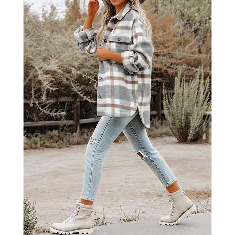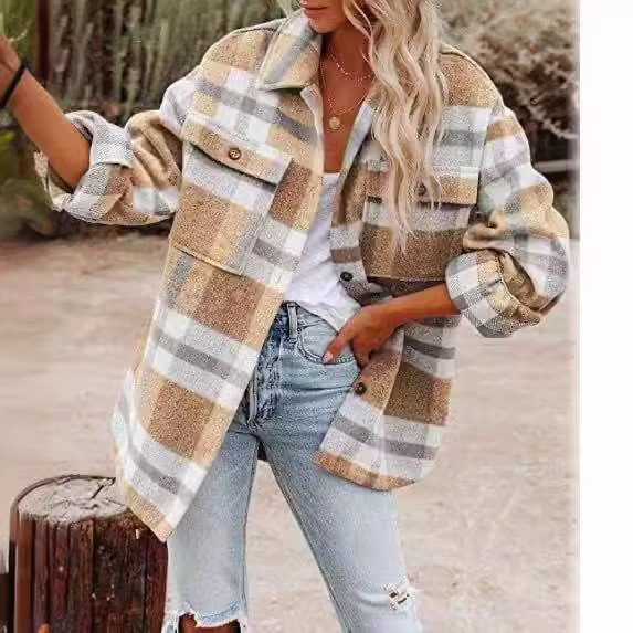 | nameOriginal | Amazon Autumn and Winter European and American Women's Autumn and Winter Long Sleeve Lapel Loose Plaid Woolen Jacket |